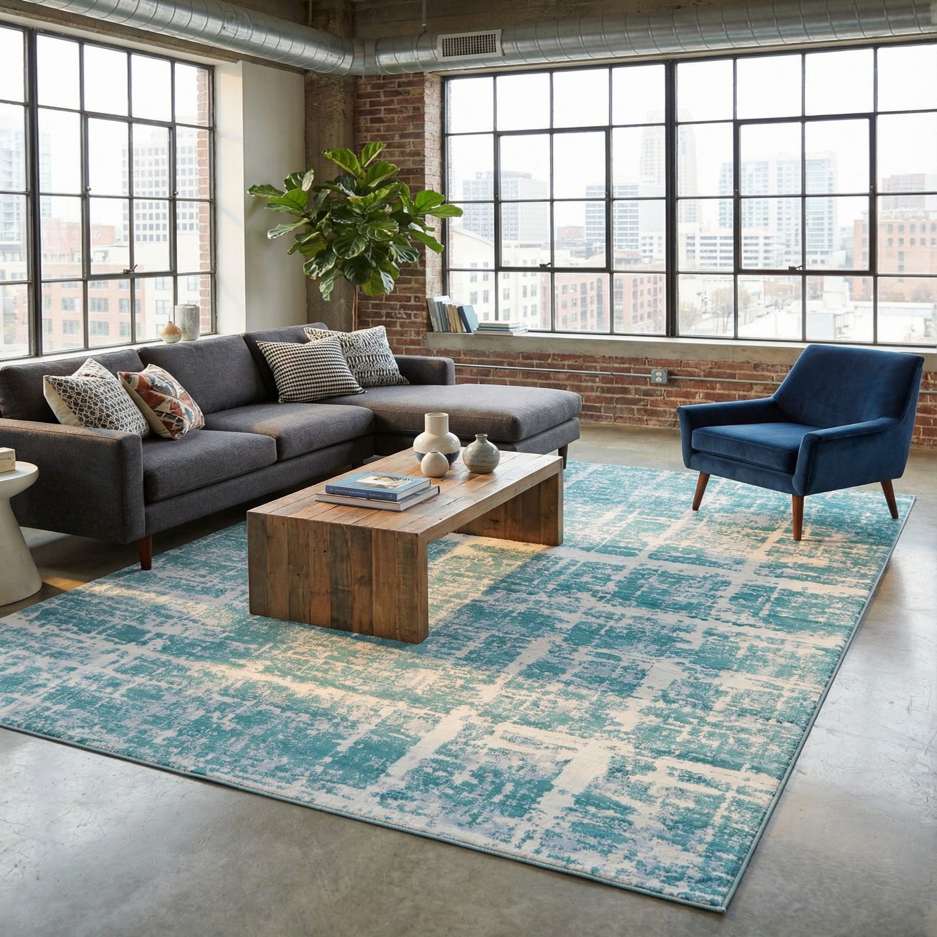 Primary color is Turquoise. Colors in this rug include: Turquoise, Ivory, Light Blue.