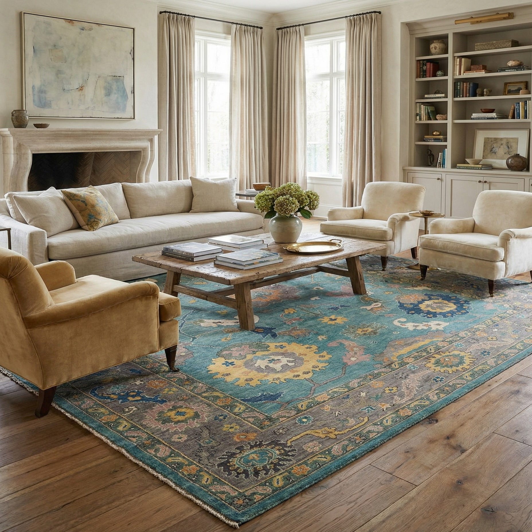Primary image 9' 2 x 12'  Hand Knotted Oushak Rug