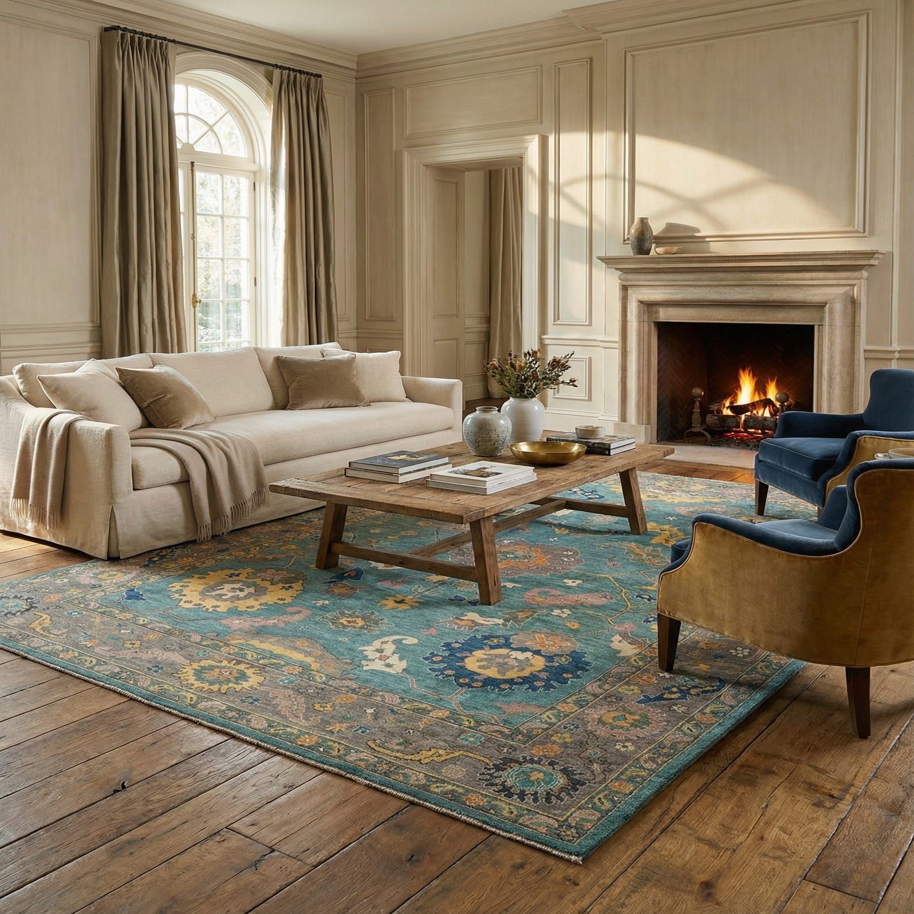 Detail image of 9' 2 x 12'  Hand Knotted Oushak Rug