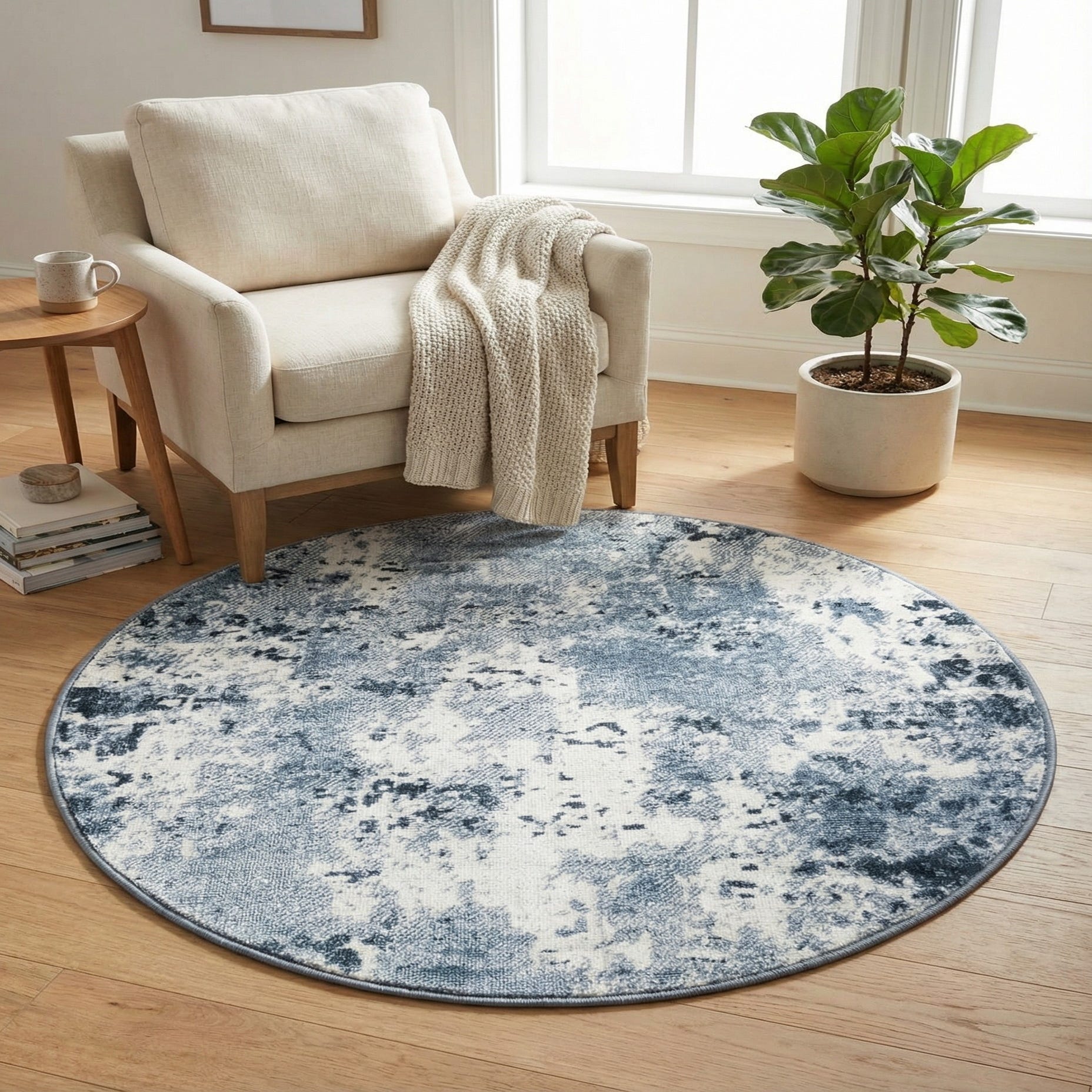 Primary color is Vintage Blue. Colors in this rug include: Vintage Blue, Ivory, Gray.