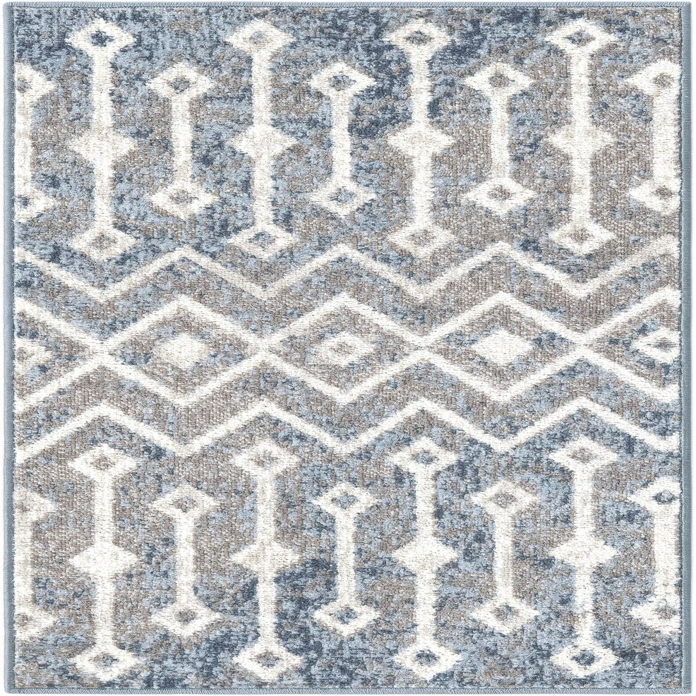 Primary color is Vintage Blue. Colors in this rug include: Vintage Blue, Ivory, Gray.