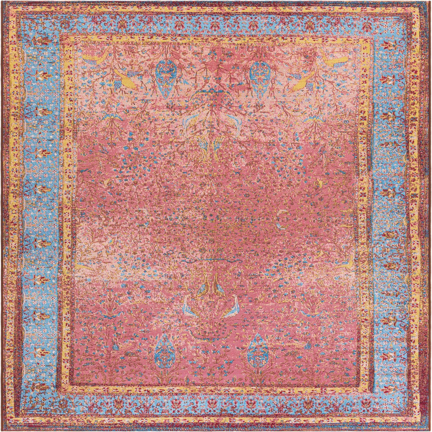 Primary color is Vintage Salmon Coral. Colors in this rug include: Vintage Salmon Coral, Beige, Blue, Brown, Yellow.