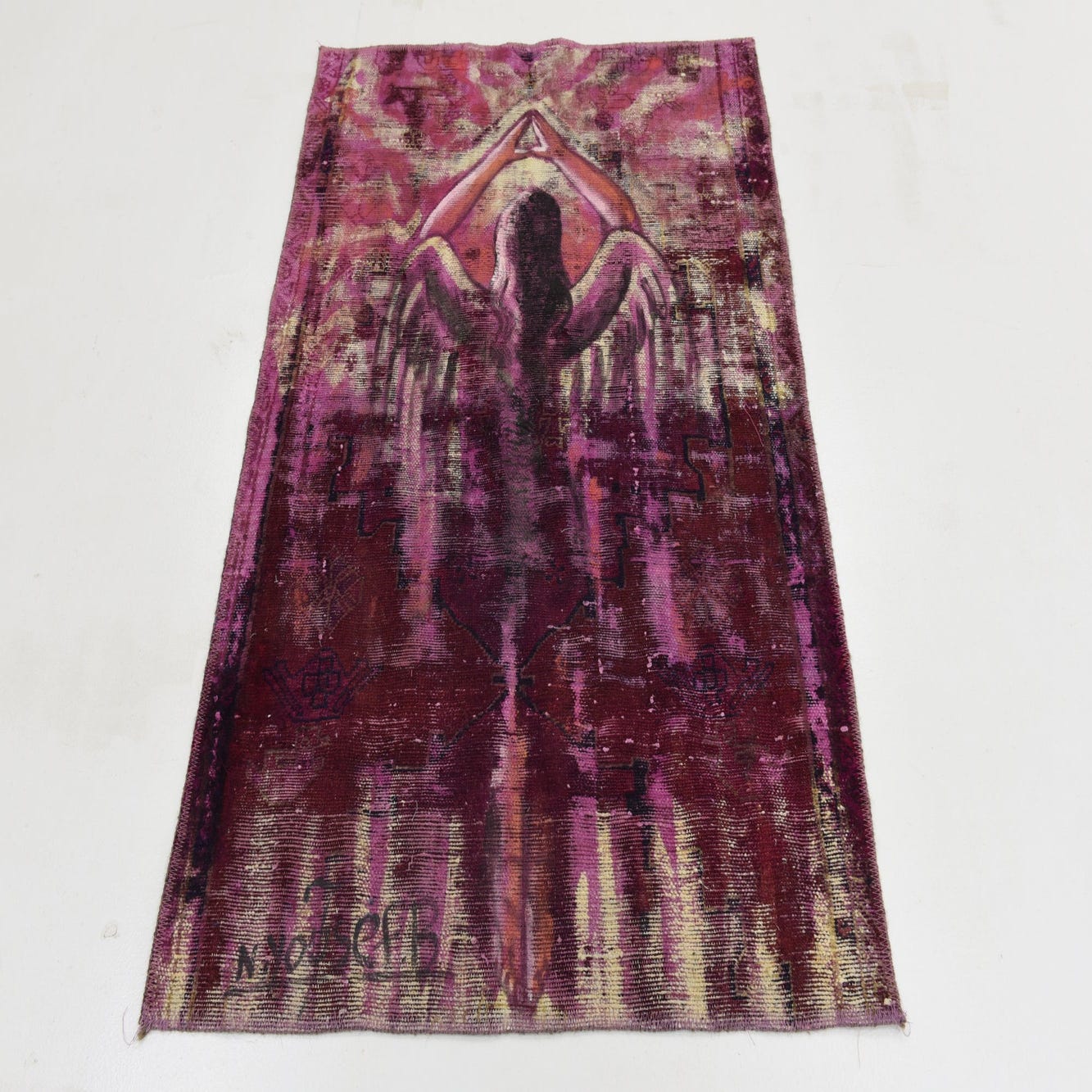 This Persian Ultra Vintage rug is an antique Persian Rug that has been washed, over-dyed, and then shaved down to a low pile. Look at the detail pictures to fully appreciate the uniqueness of this piece.