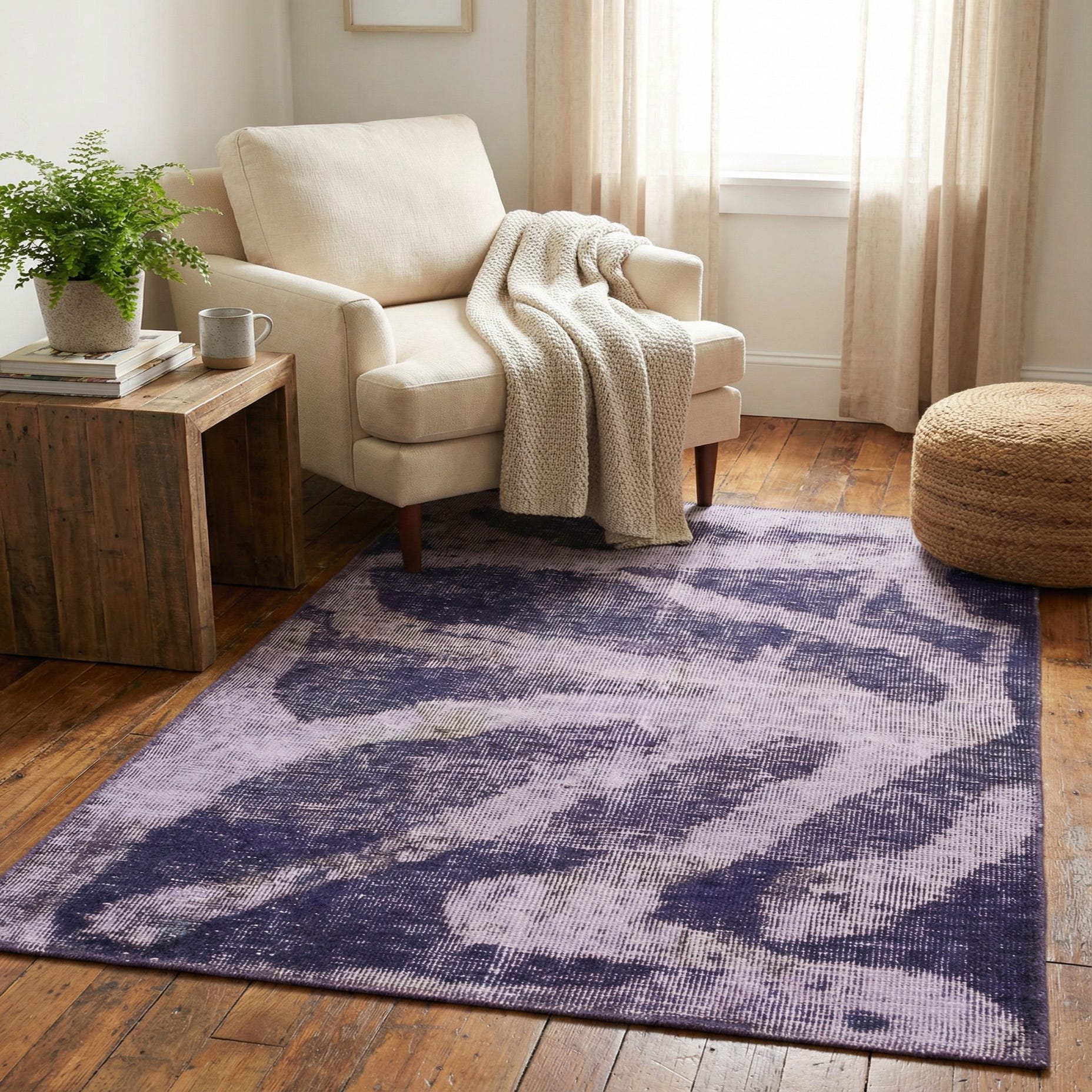 Primary color is Violet. Colors in this rug include: Violet, Black, Purple.