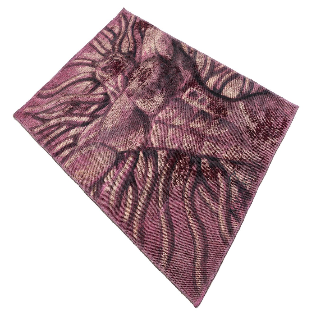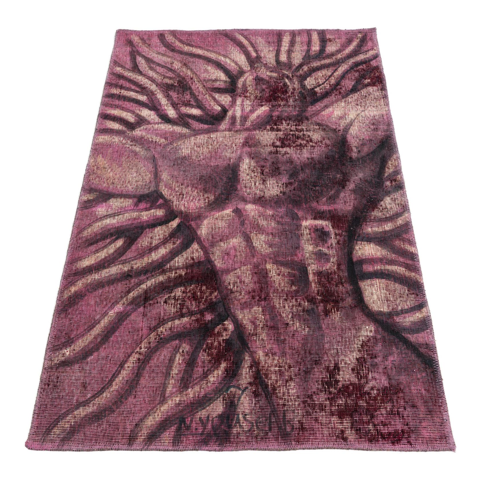 Primary color is Violet. Colors in this rug include: Violet, Beige, Gray, Black.