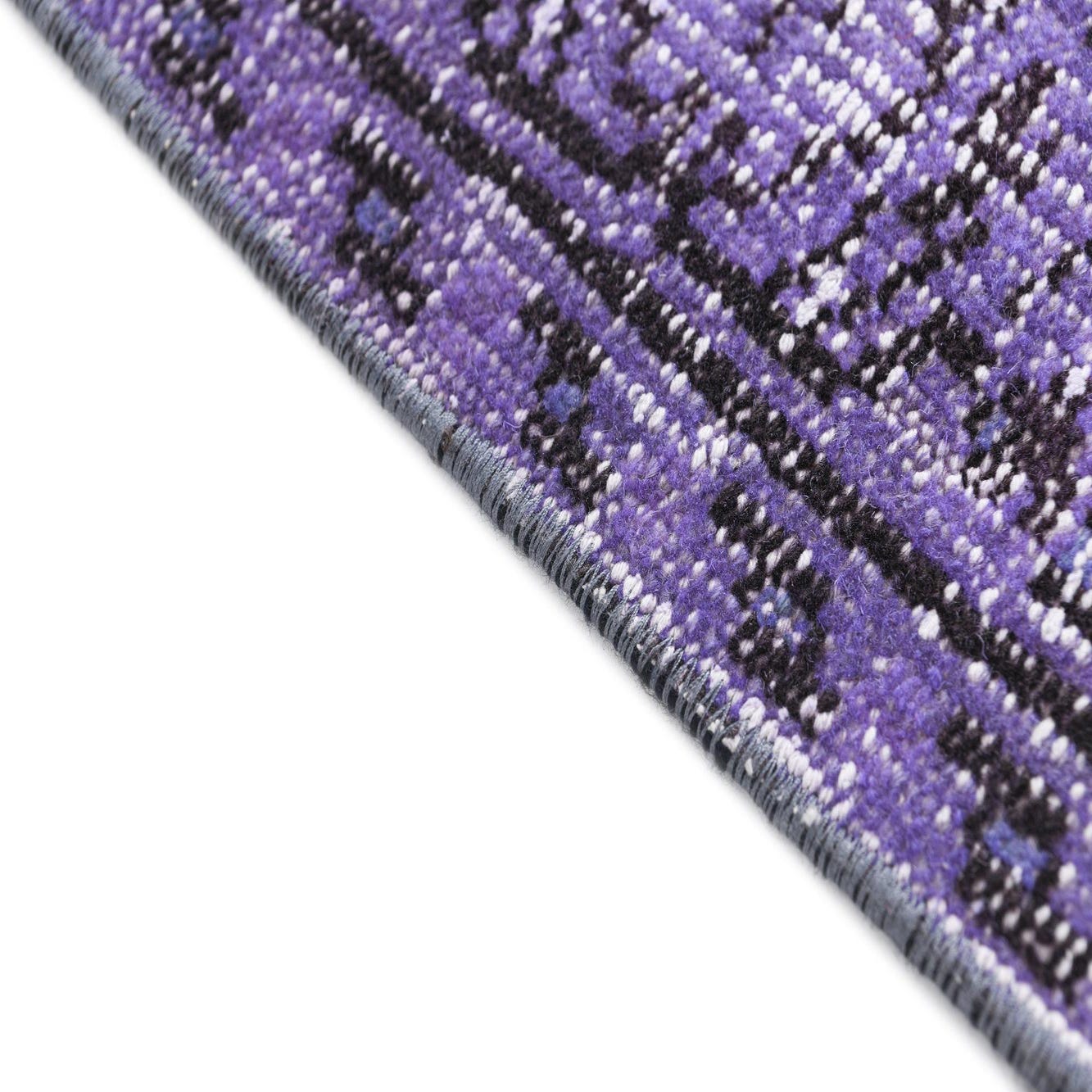 Primary color is Violet. Colors in this rug include: Violet, Black, Beige, Brown.