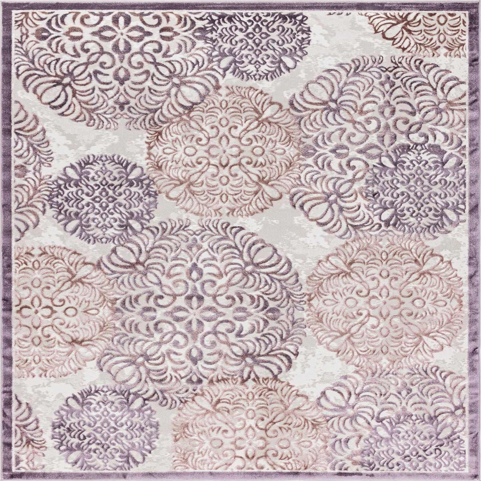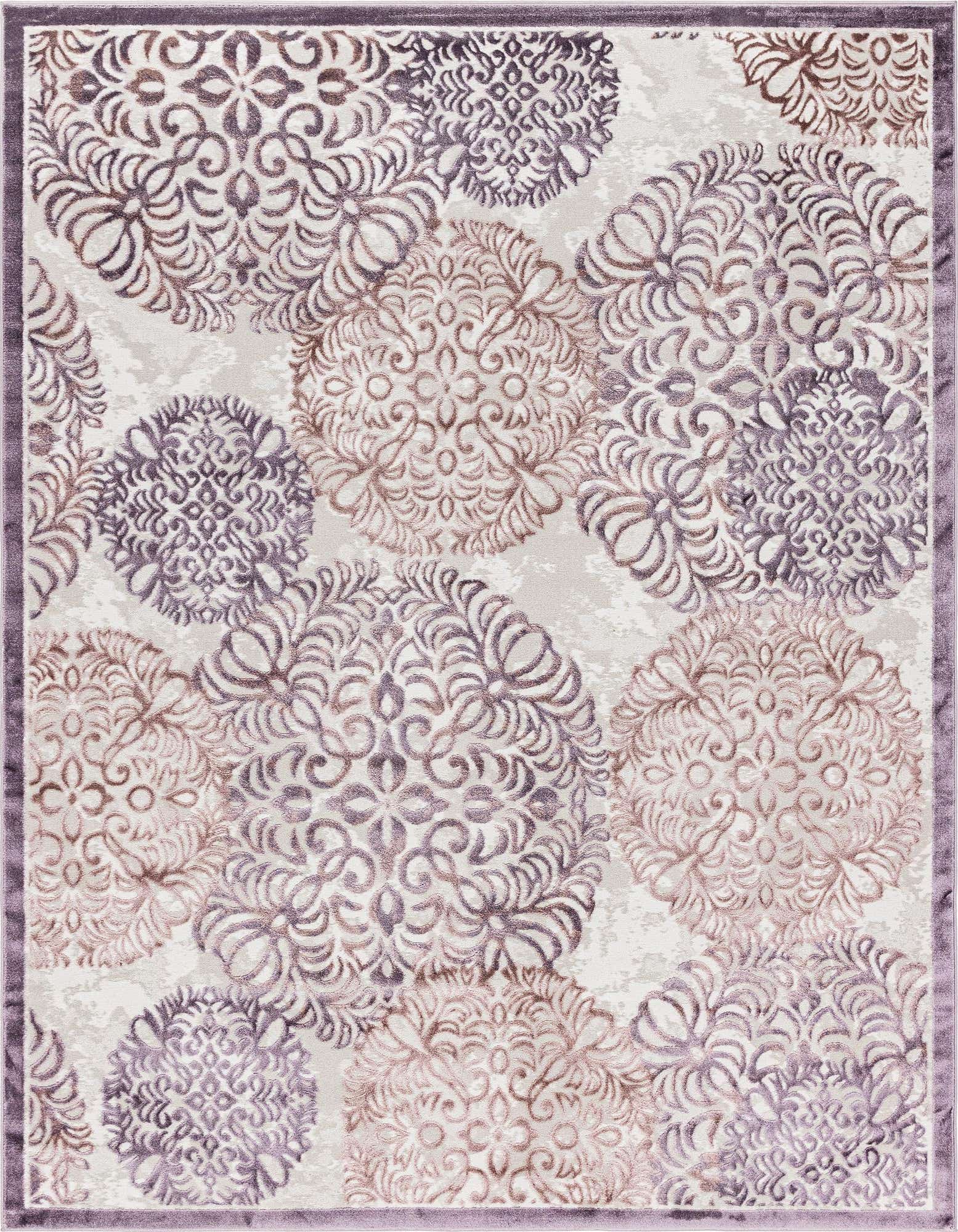 Primary color is Violet. Colors in this rug include: Violet, Ivory, Light Brown.