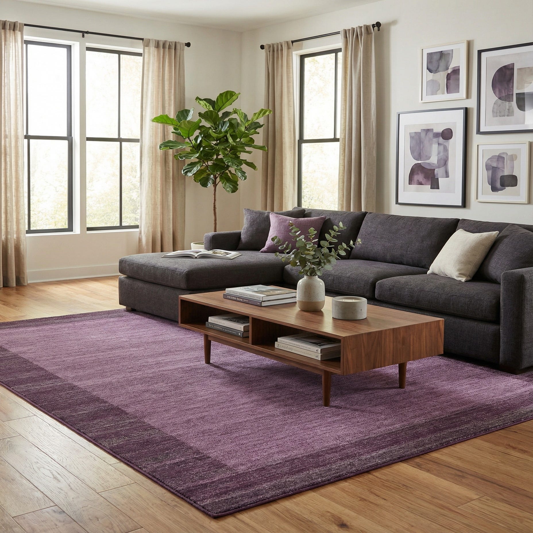 Primary color is Violet. Colors in this rug include: Violet, Gray.