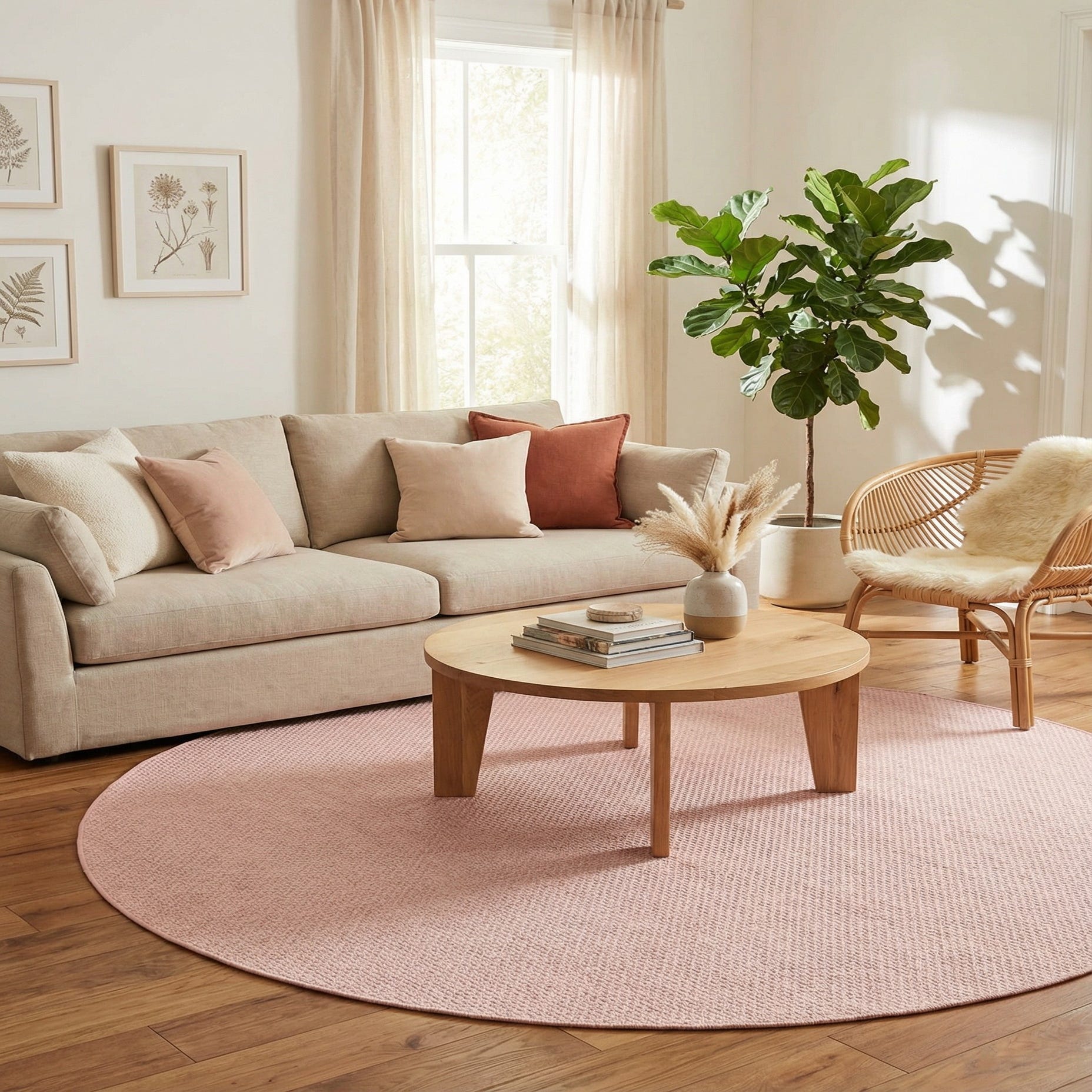Primary color is Whisper Pink. Colors in this rug include: Whisper Pink, Ivory.