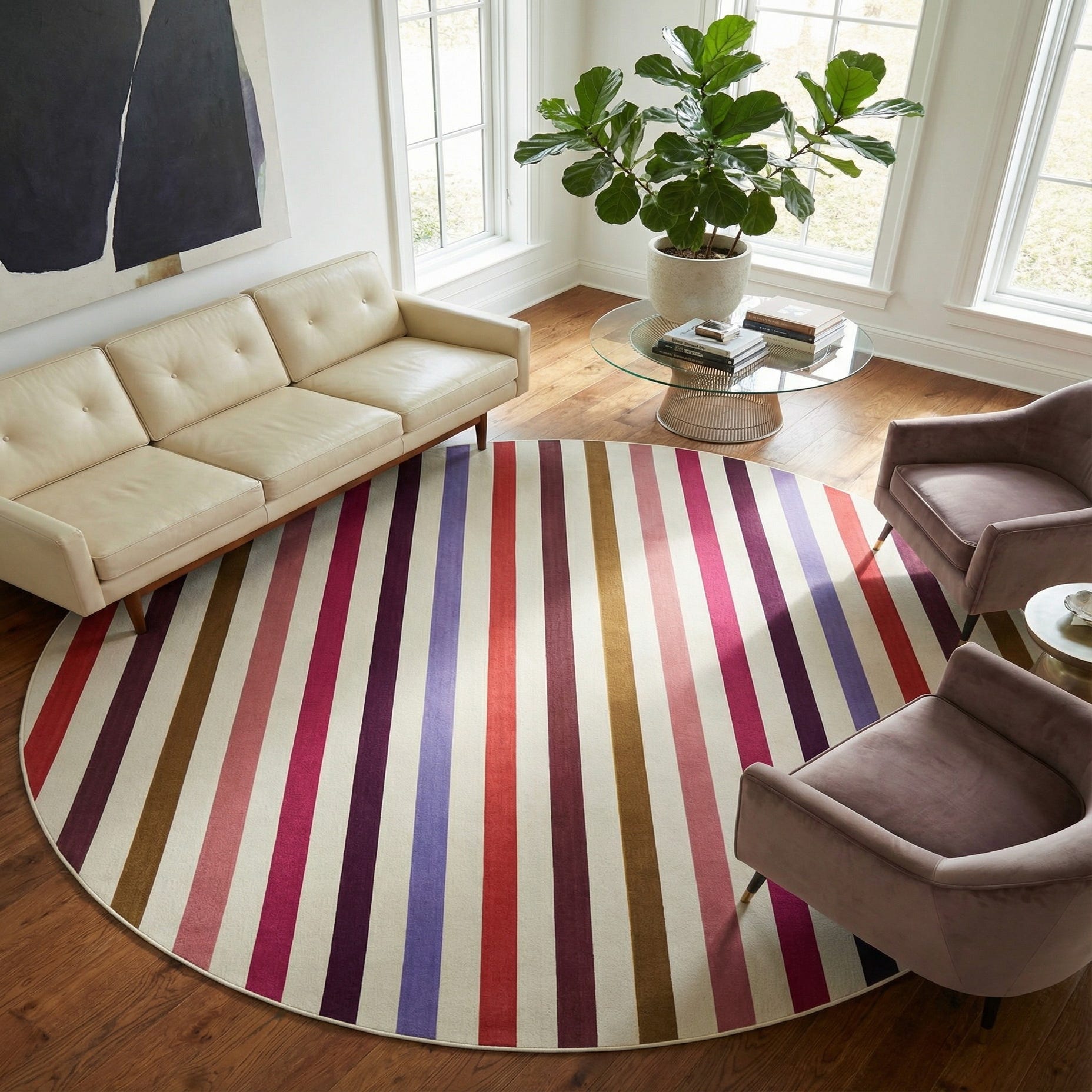 Primary image 10' x 10'  Washable Striped Indoor / Outdoor Round Rug