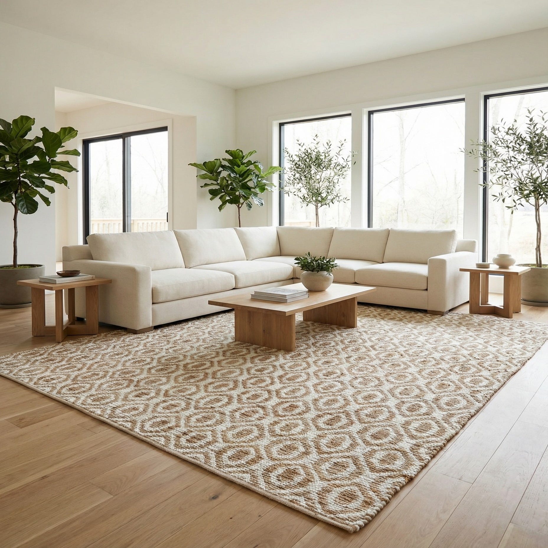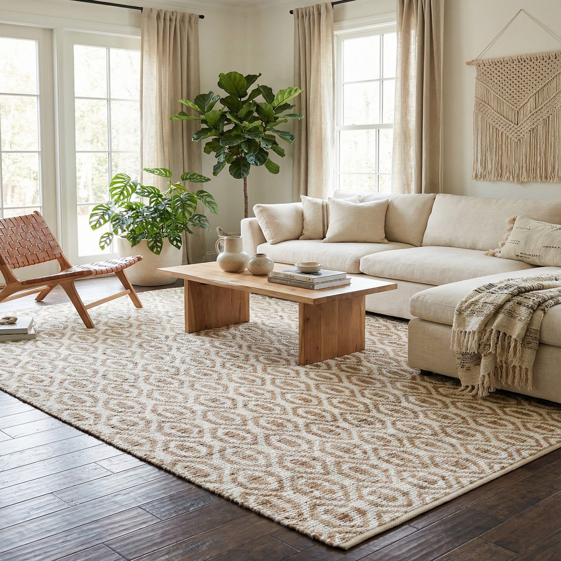 Primary color is White. Colors in this rug include: White, Natural.