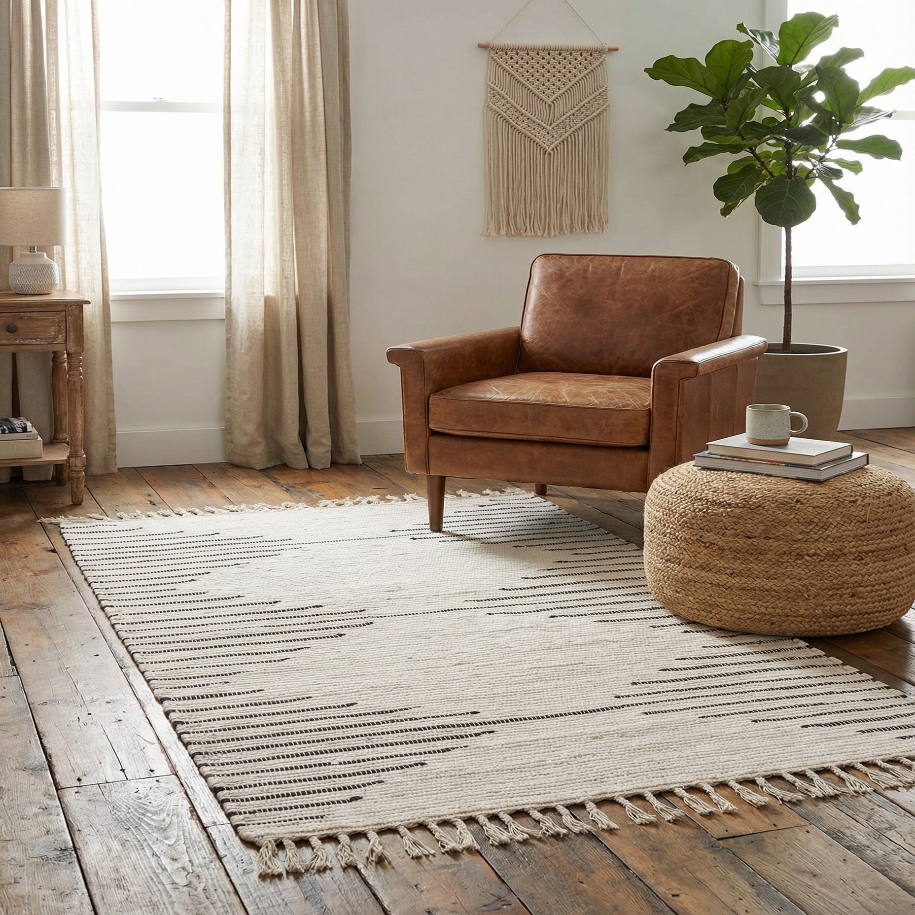 • Cognac leather accent ottoman