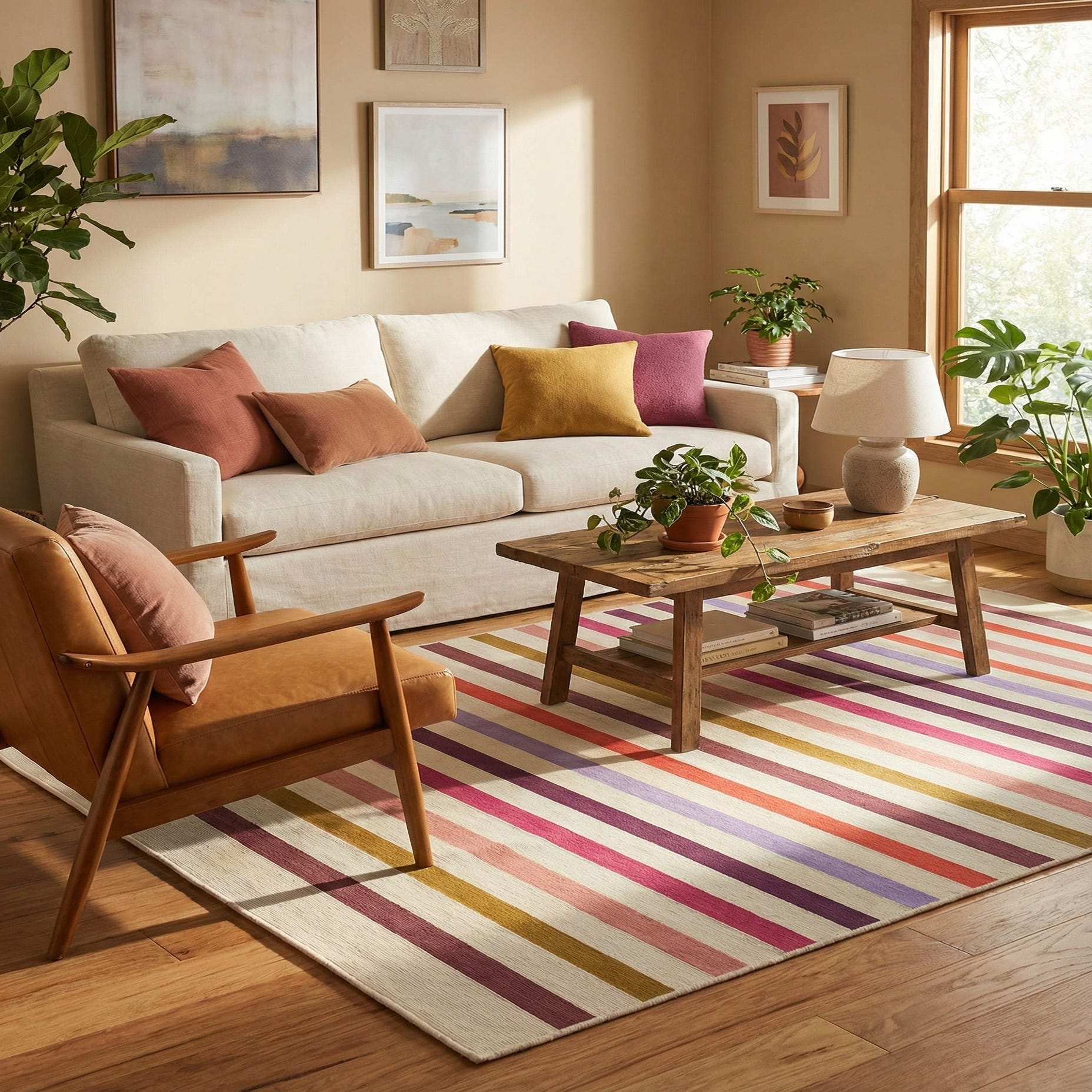 5' 3 x 8' Washable Striped Indoor / Outdoor Rug