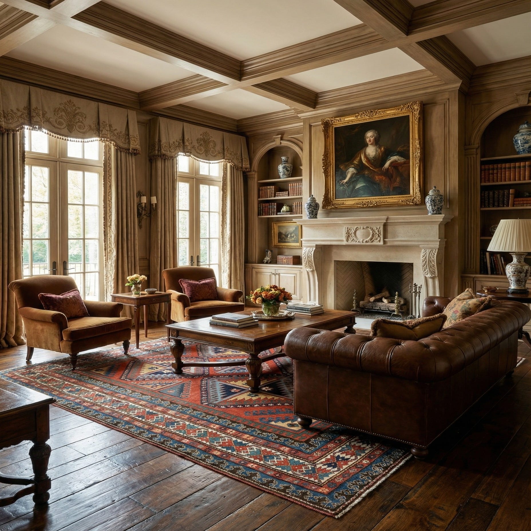 Primary color is White. Colors in this rug include: White, Red, Blue, Beige, Brown, Green.
