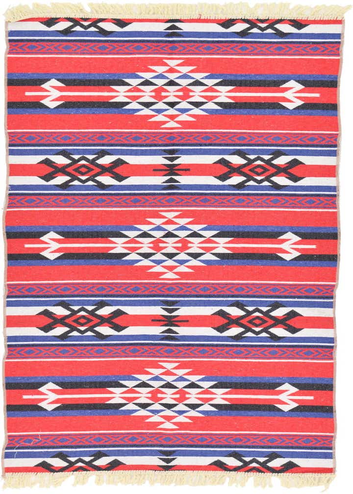 Primary color is Cream. Colors in this rug include: Cream, Black, Blue, Red.