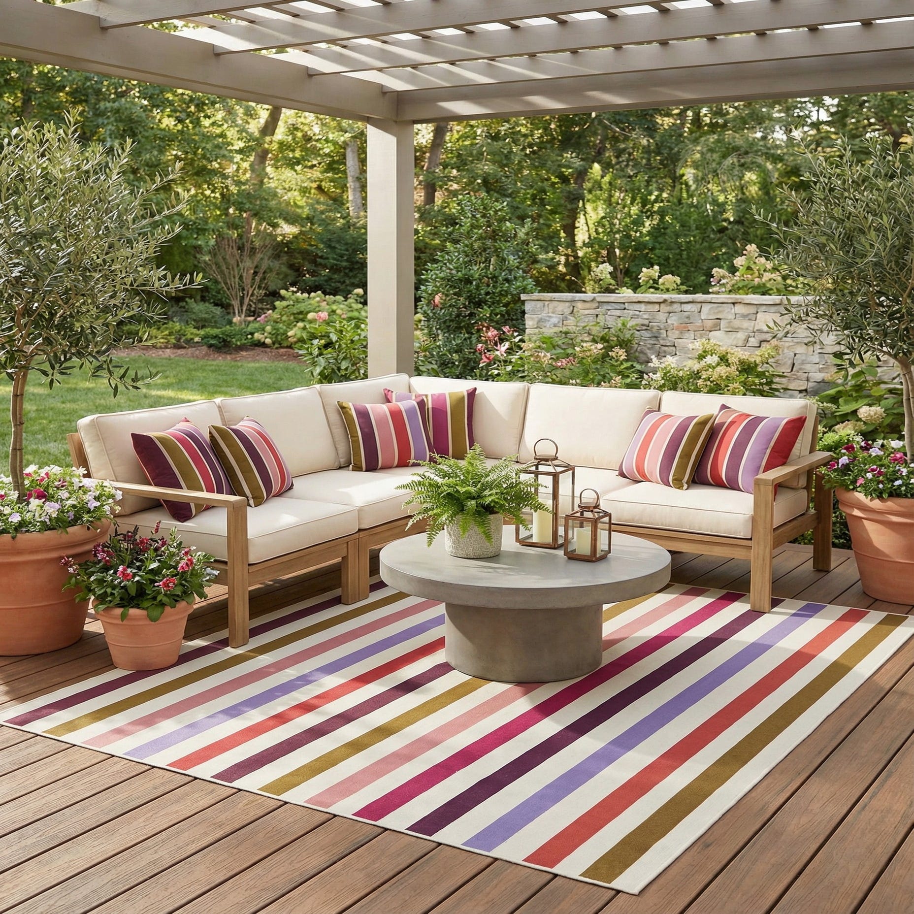 7' 10 x 7' 10 Washable Striped Indoor / Outdoor Square Rug