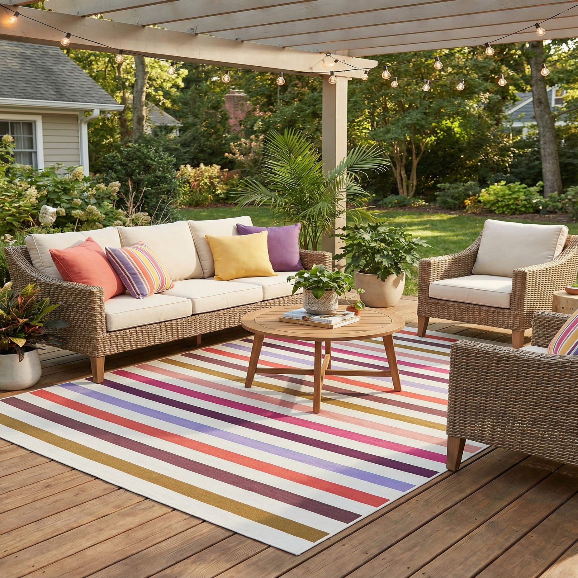 7' 10 x 10' Washable Striped Indoor / Outdoor Rug