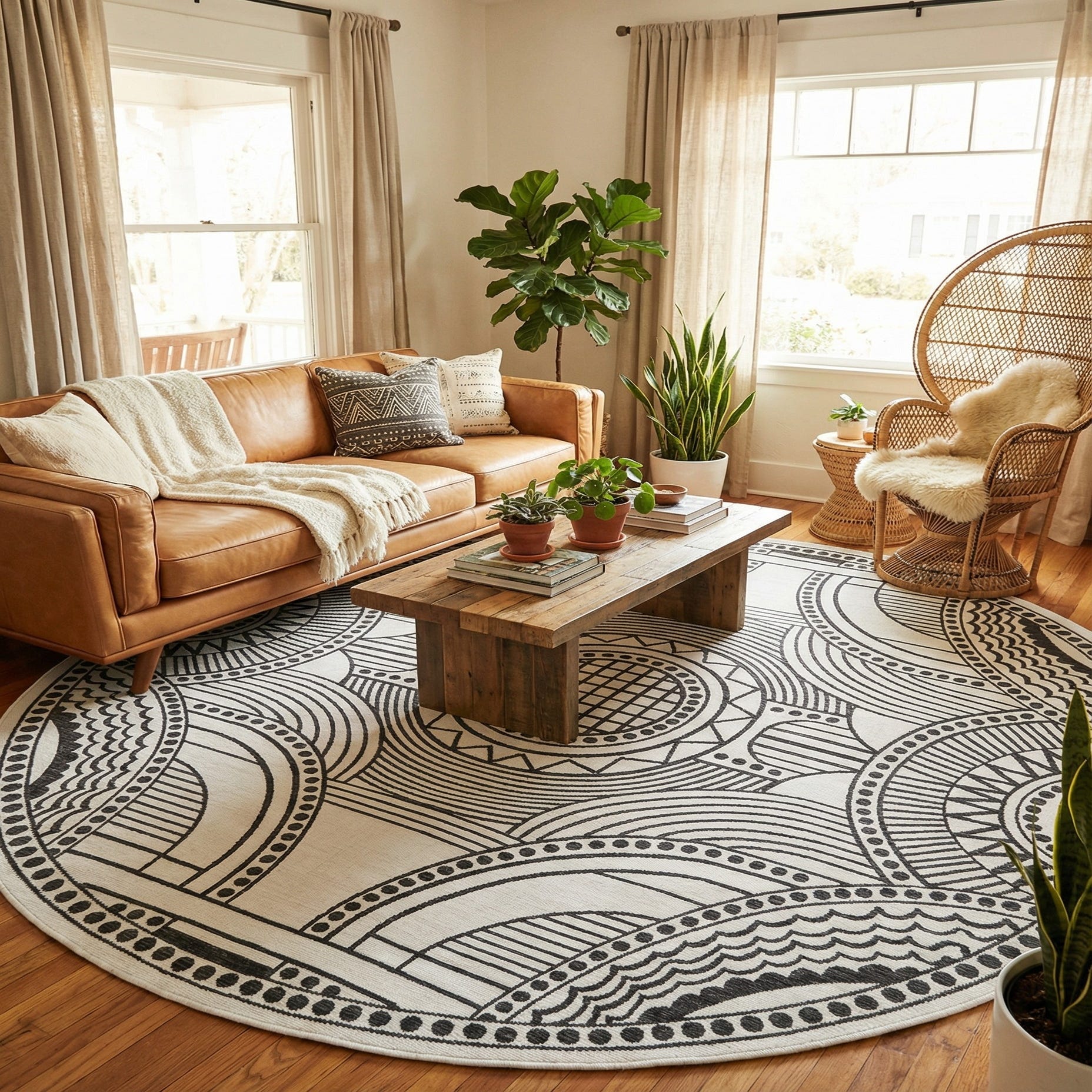 10' x 10' Washable Traditional Indoor / Outdoor Round Rug