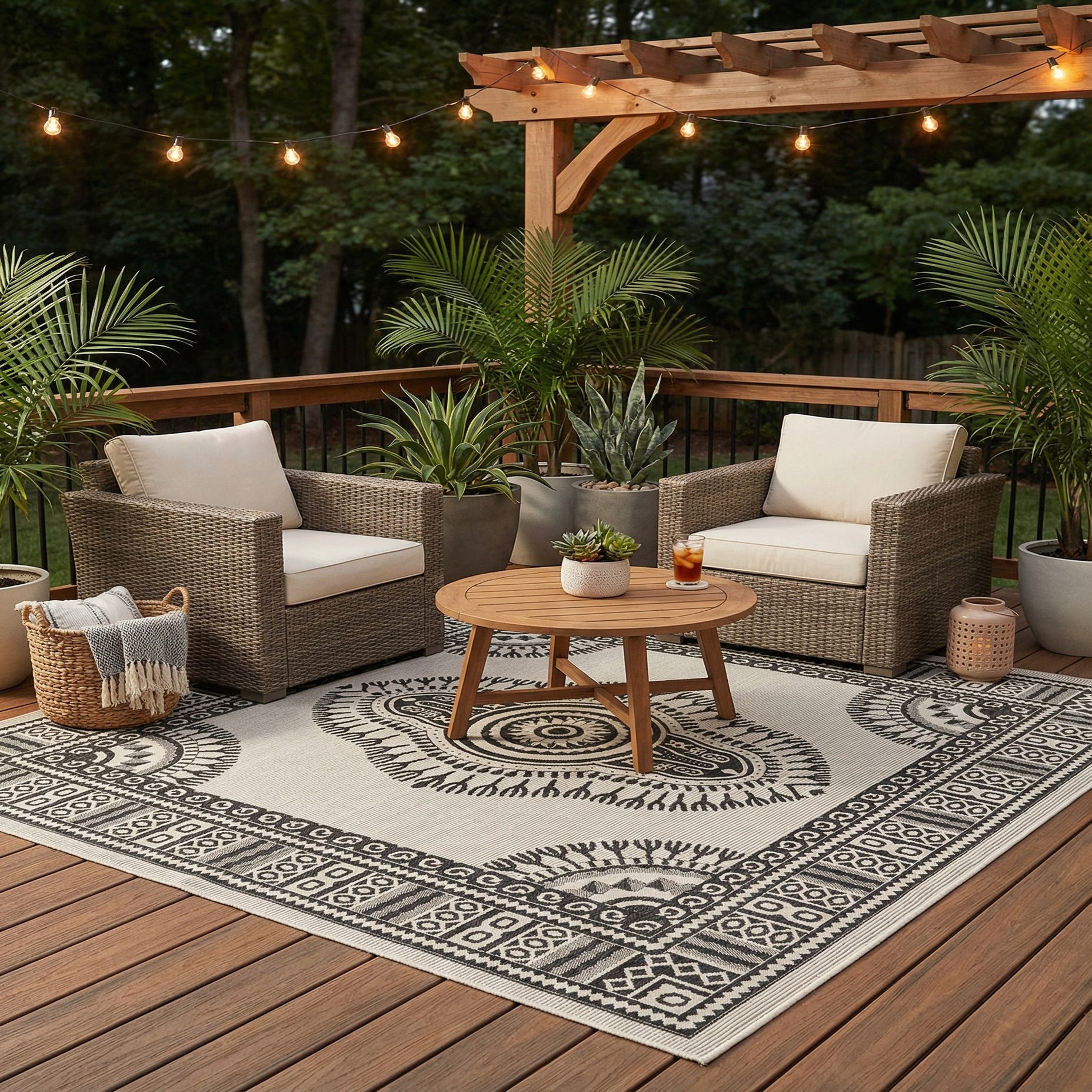 Detail image of 10' x 10'  Washable Traditional Indoor / Outdoor Square Rug