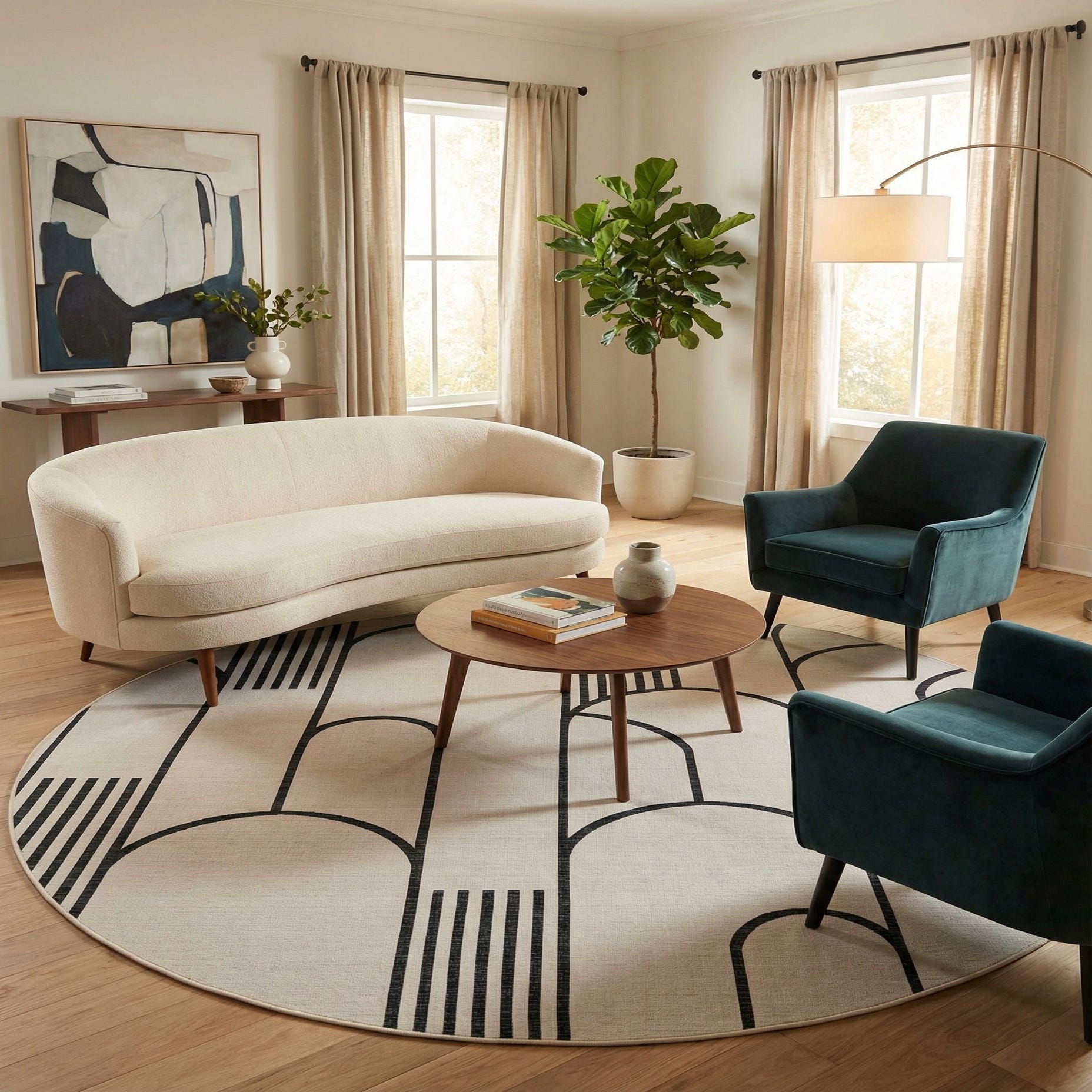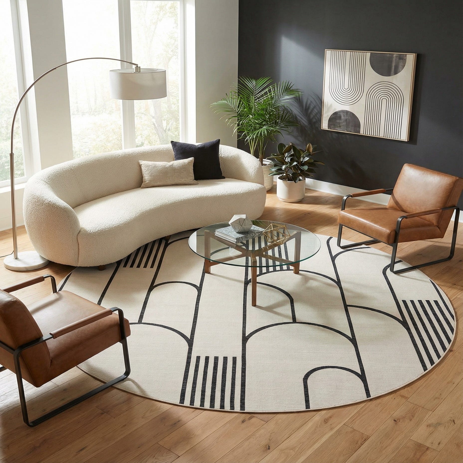 12' x 12' Washable Modern Indoor / Outdoor Round Rug