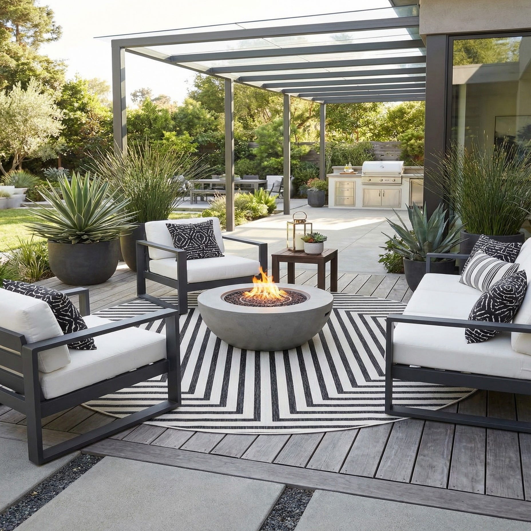 12' x 12' Washable Modern Indoor / Outdoor Round Rug