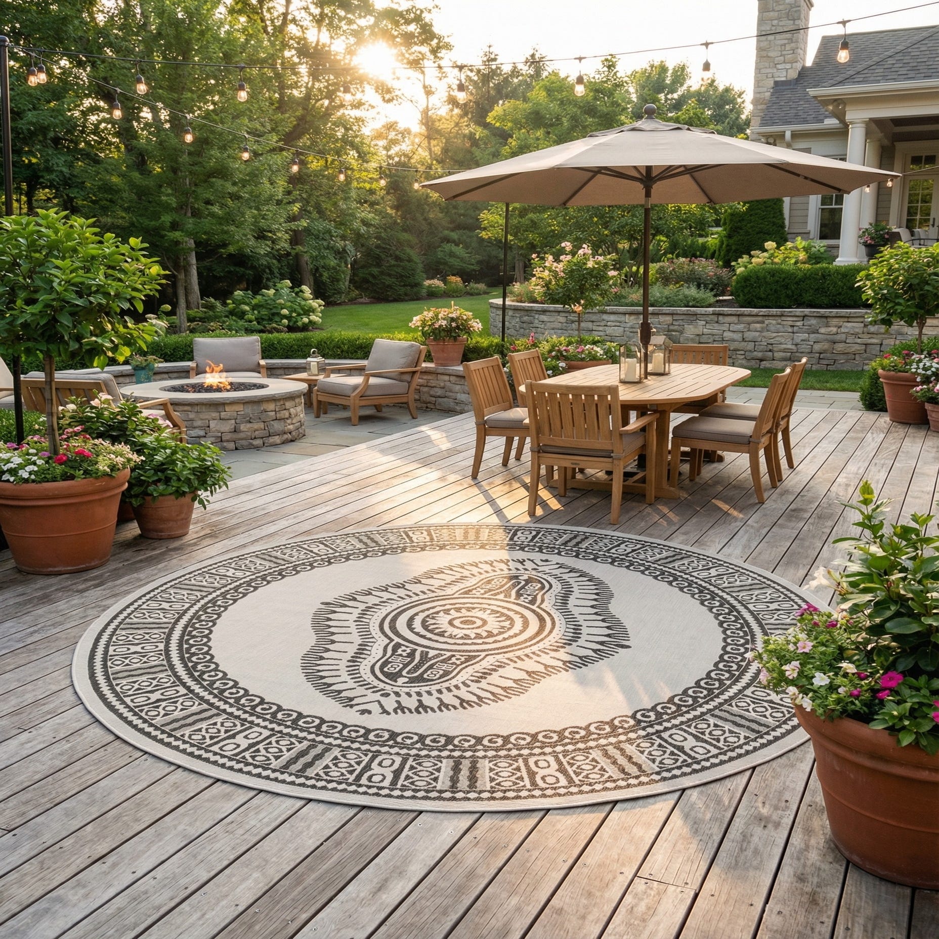 Primary image 12' x 12'  Washable Traditional Indoor / Outdoor Round Rug