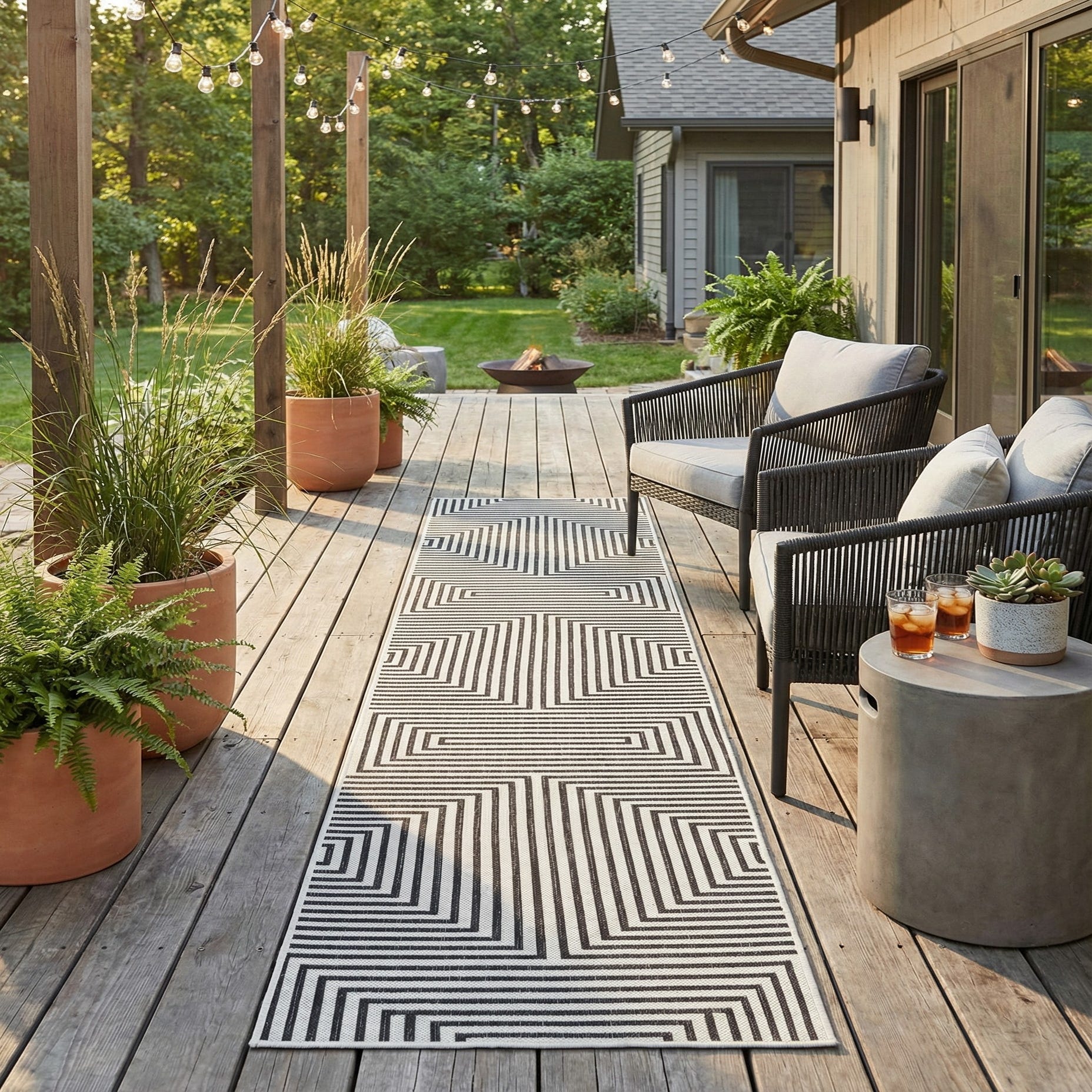 2' 7 x 12' Washable Modern Indoor / Outdoor Runner Rug