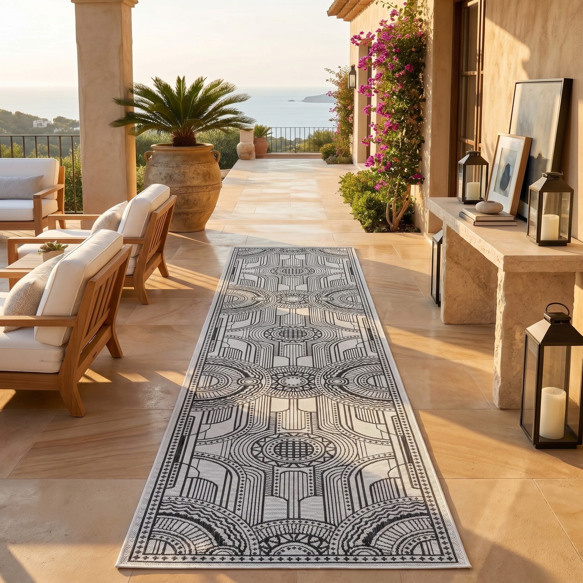 2' 7 x 12' Easy-Clean Traditional Indoor / Outdoor Runner Rug