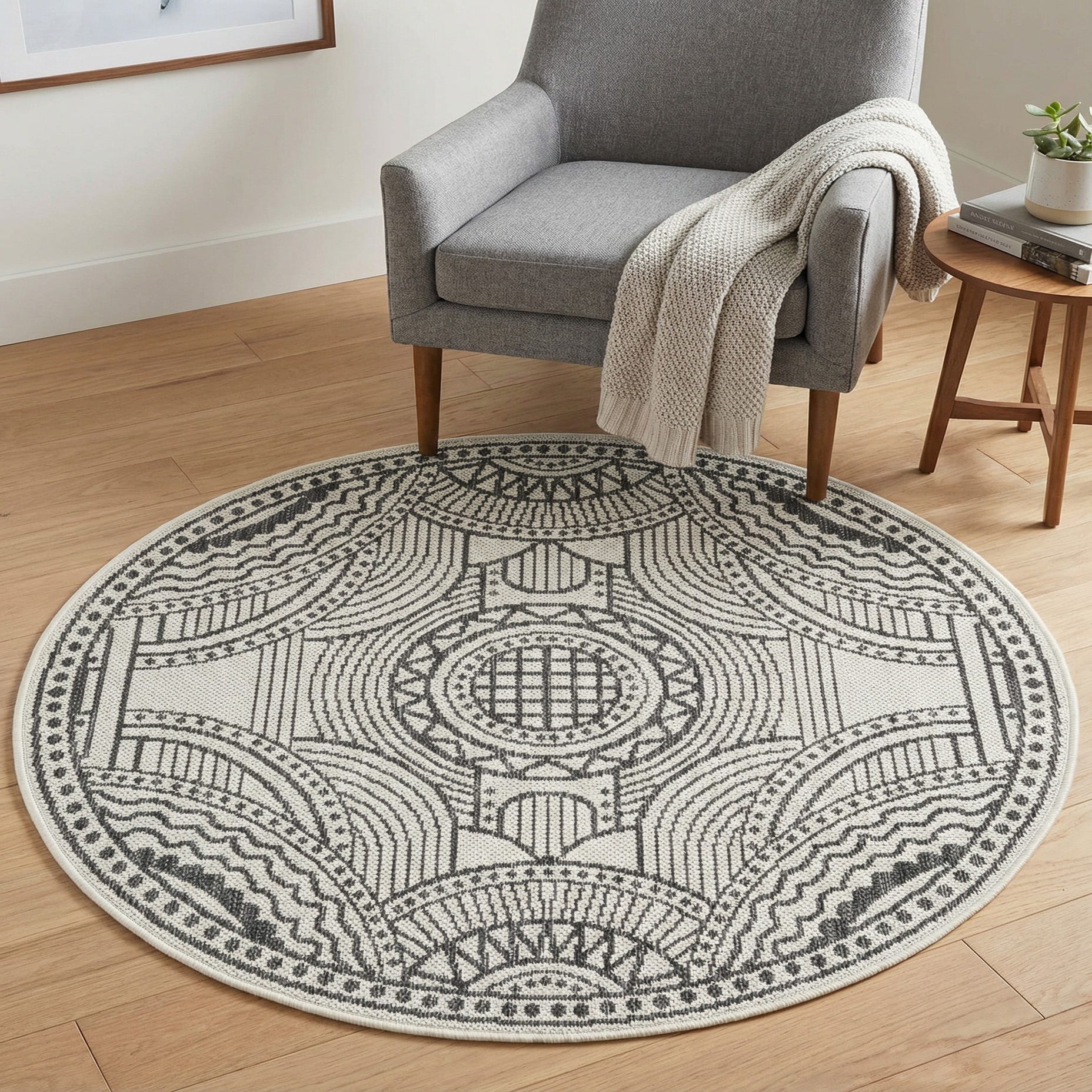 Detail image of 3' 1 x 3' 1  Washable Traditional Indoor / Outdoor Round Rug