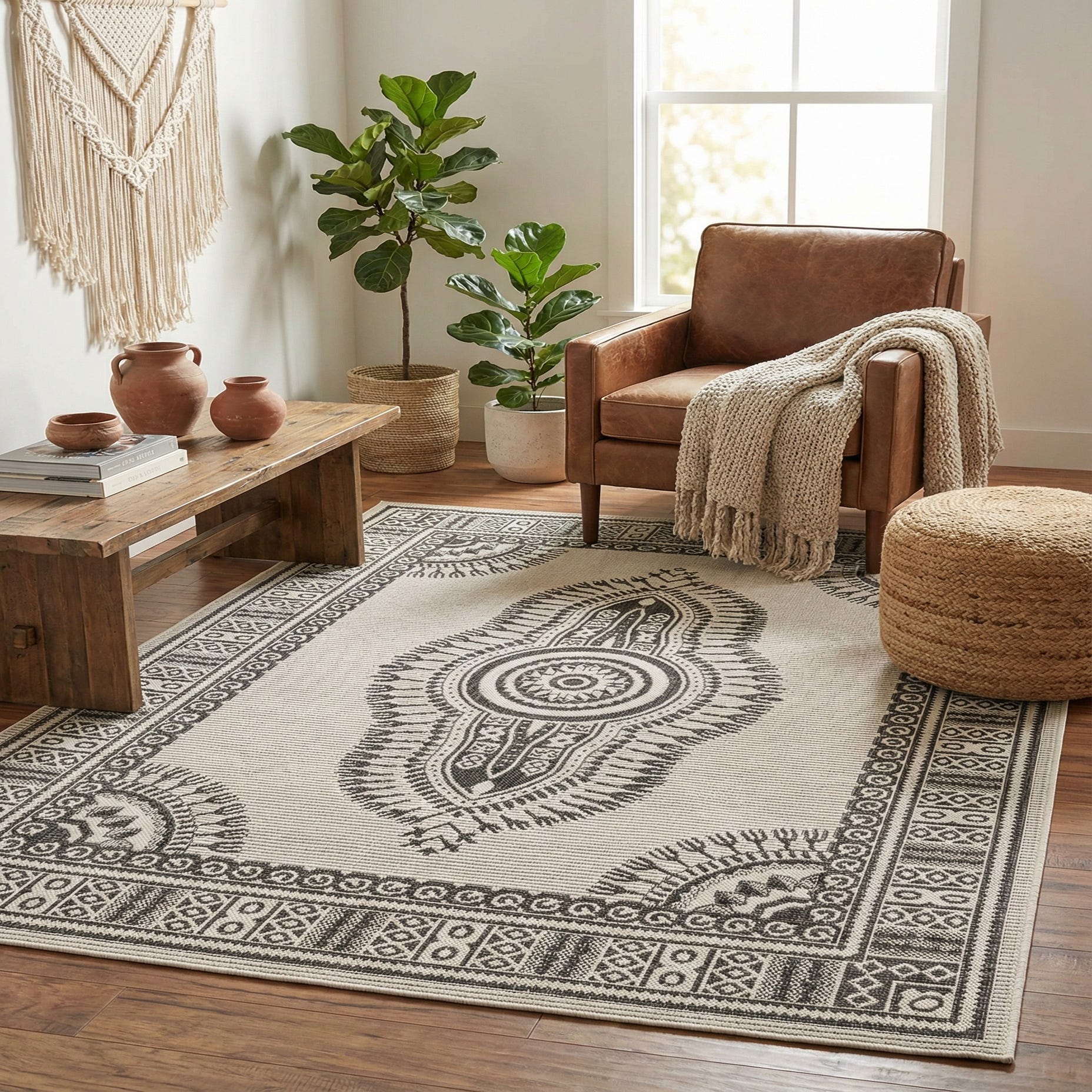 Primary image 5' 3 x 7'  Washable Traditional Indoor / Outdoor Rug