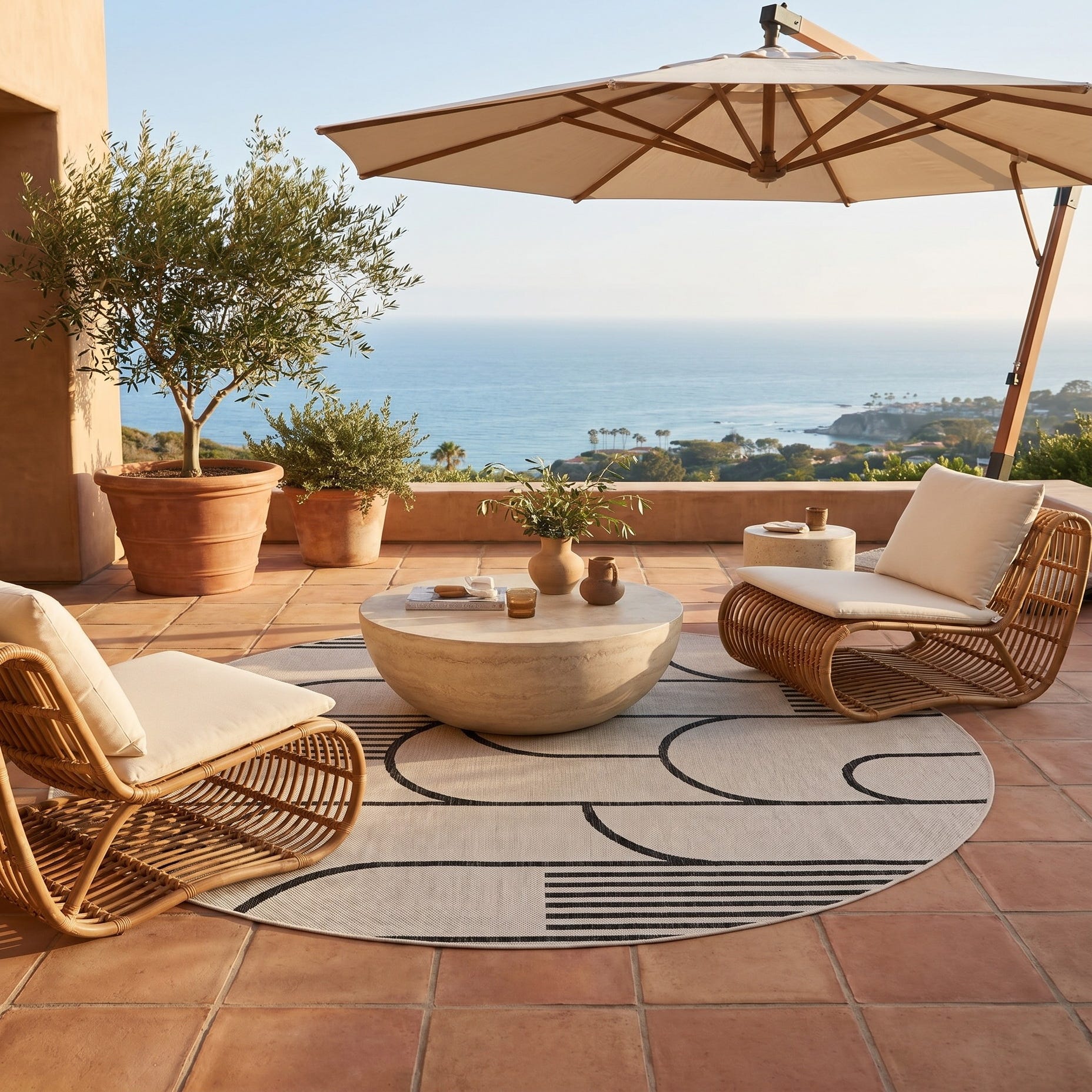 6' x 6' Easy-Clean Modern Indoor / Outdoor Round Rug