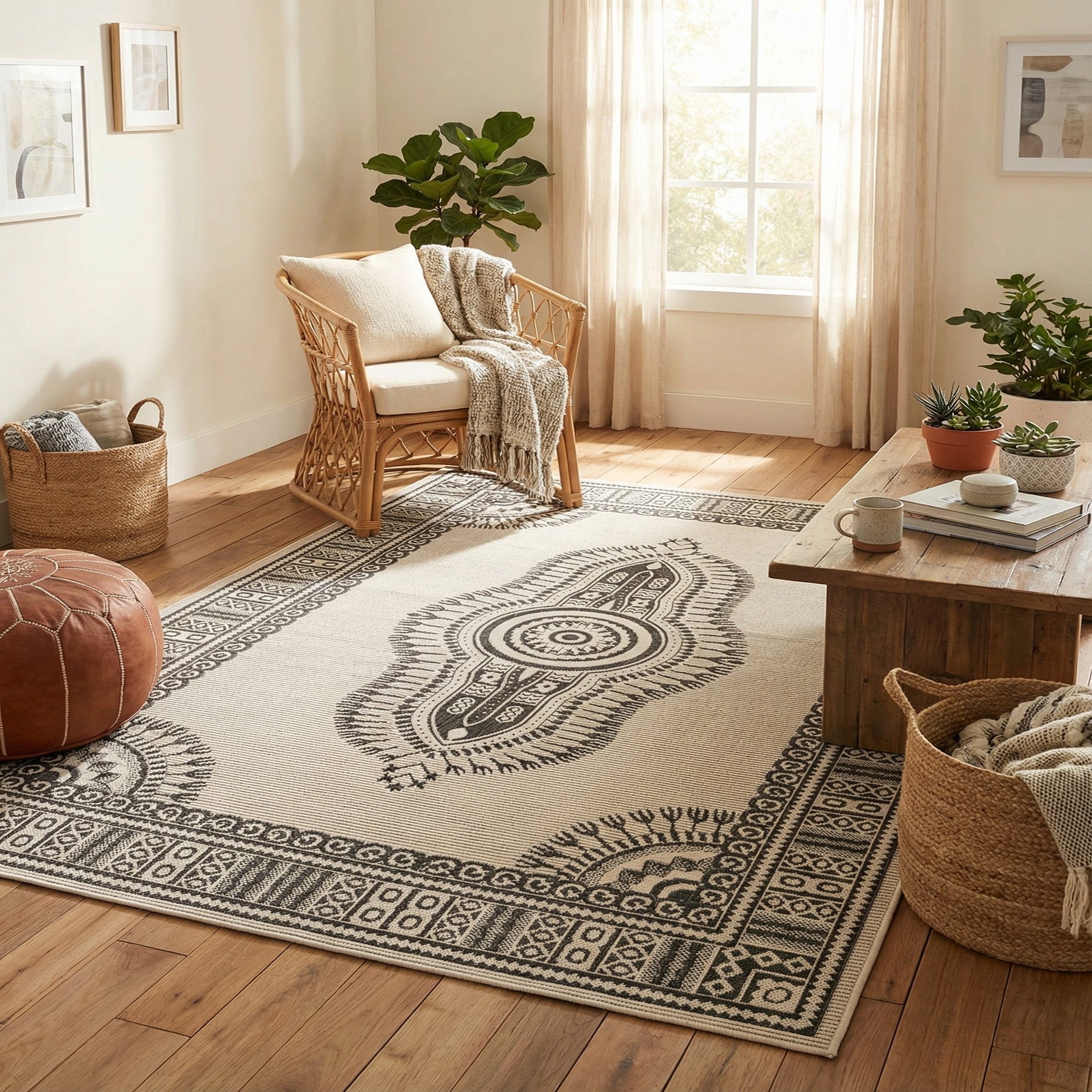 Detail image of 6' x 9'  Washable Traditional Indoor / Outdoor Rug