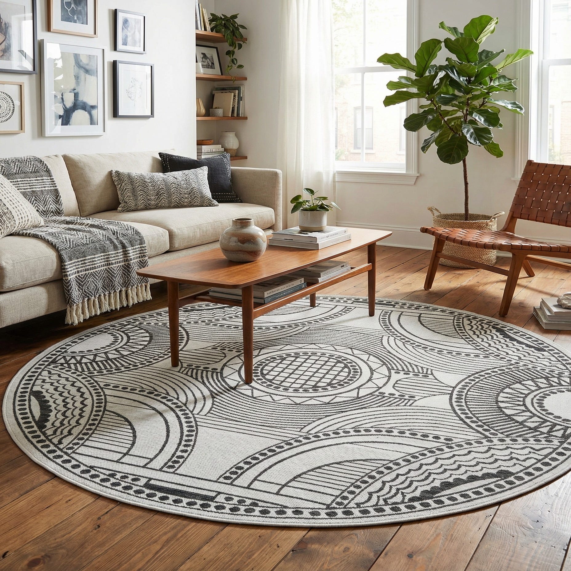 Primary image 7' 10 x 7' 10  Washable Traditional Indoor / Outdoor Round Rug