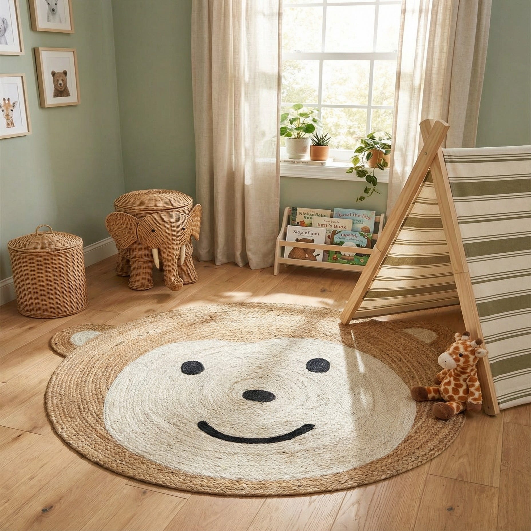 4' 1 x 4' 1 Hand Braided Kids Braided Jute Round Rug