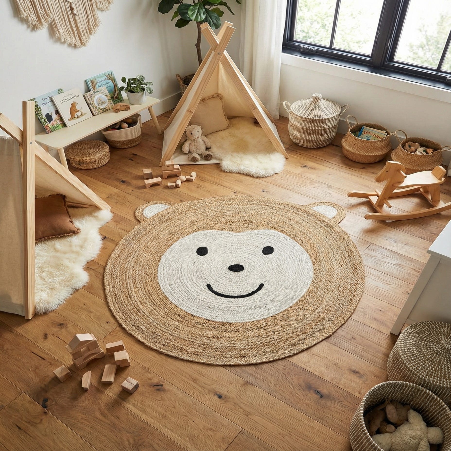 5' 1 x 5' 1 Hand Braided Kids Braided Jute Round Rug