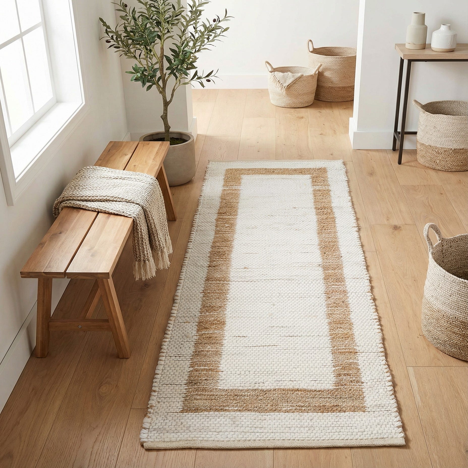 Primary color is White and Natural. Colors in this rug include: White and Natural, Natural.
