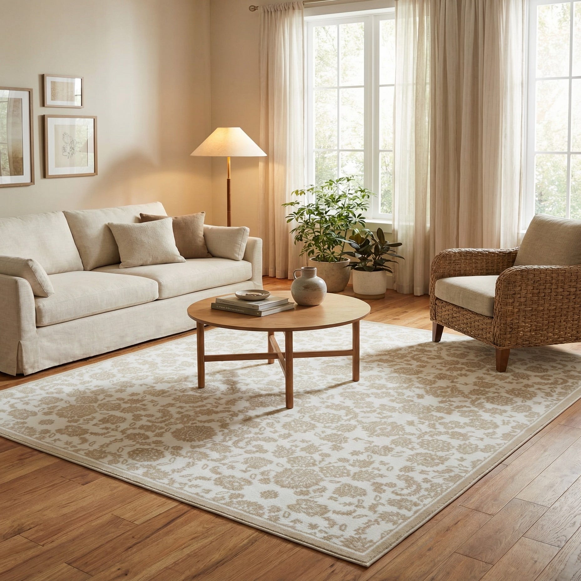 Primary color is White Brown. Colors in this rug include: White Brown, Beige.