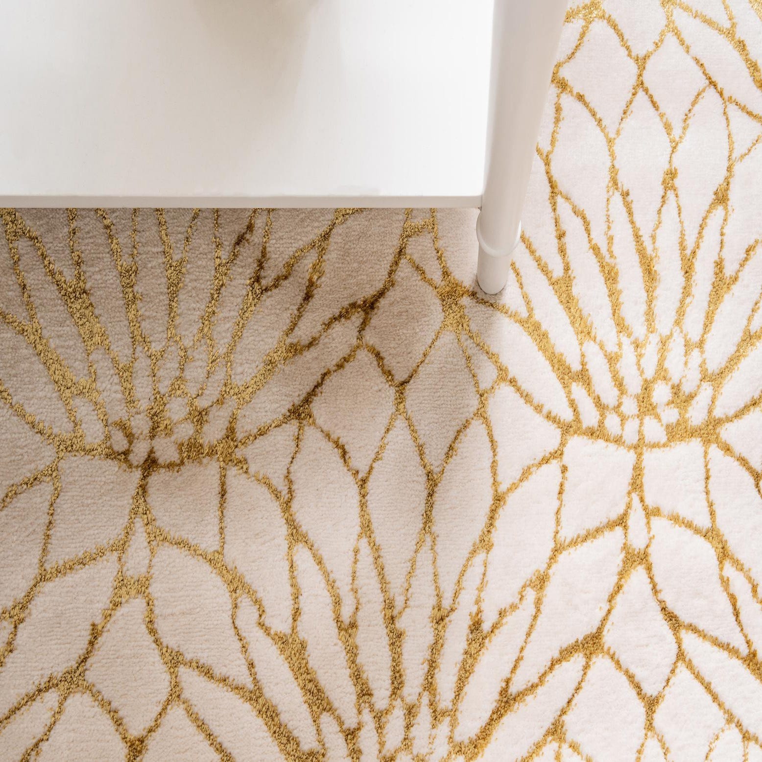 Primary color is White Gold. Colors in this rug include: White Gold, Gold.