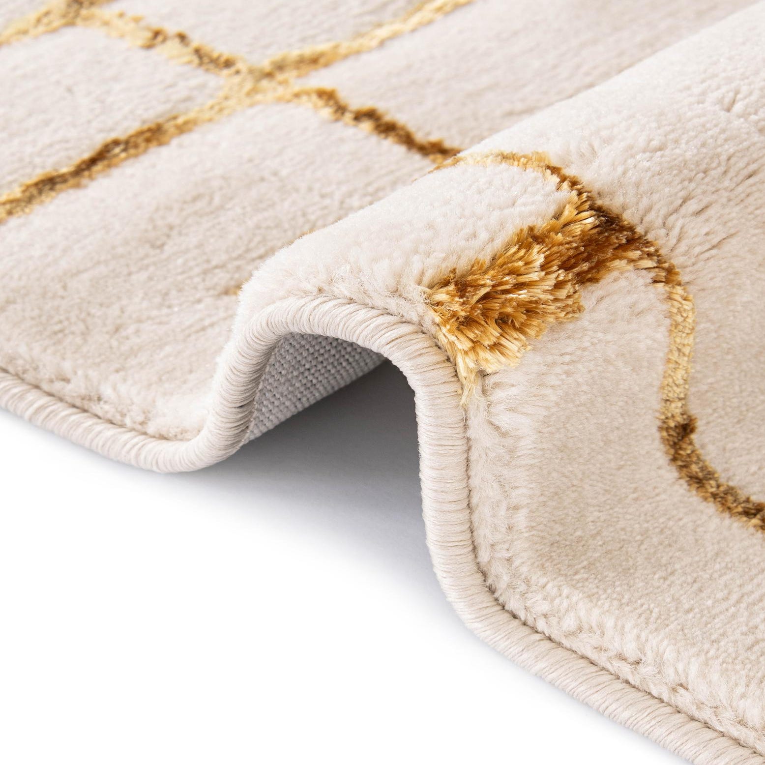 Primary color is White Gold. Colors in this rug include: White Gold, Gold.