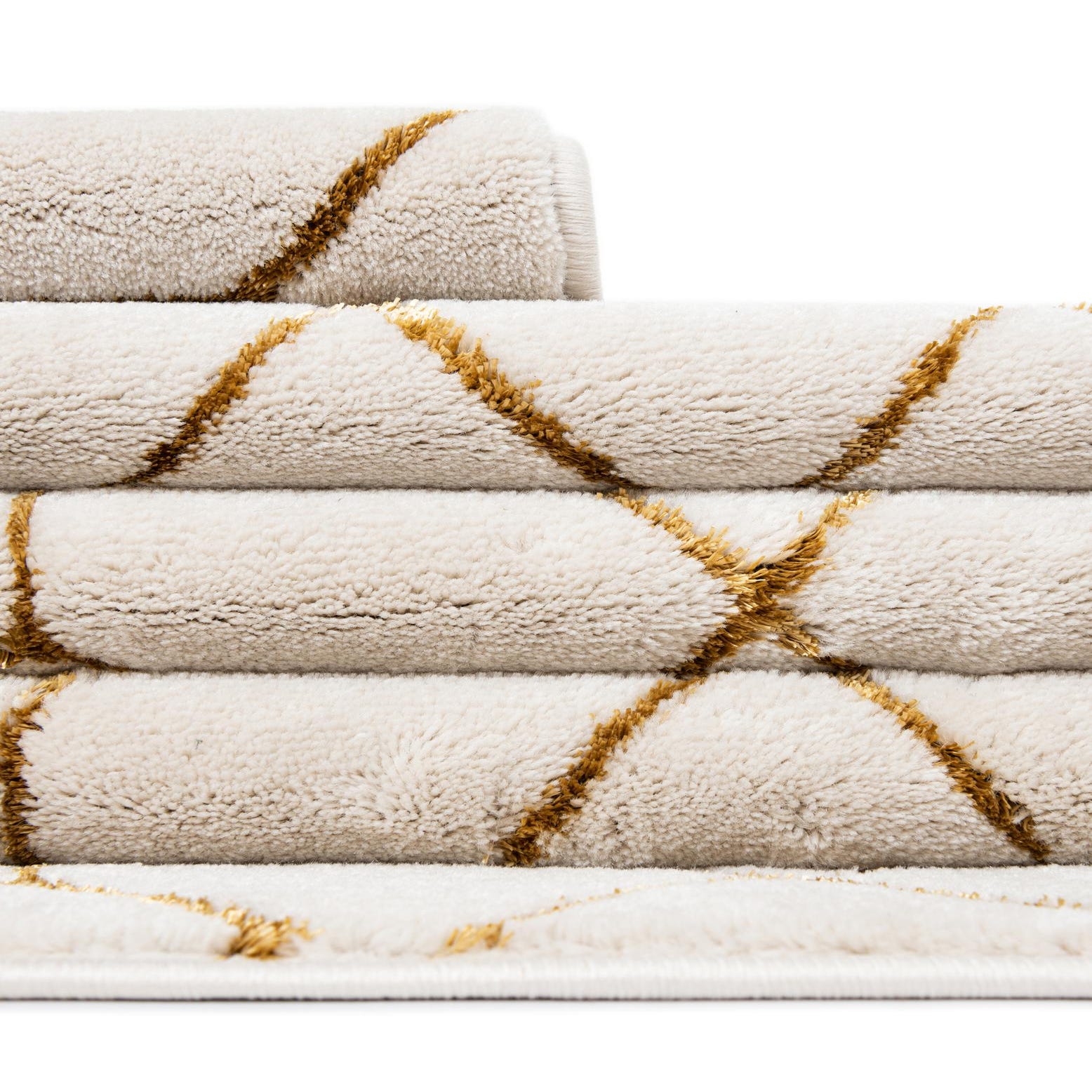 Primary color is White Gold. Colors in this rug include: White Gold, Gold.