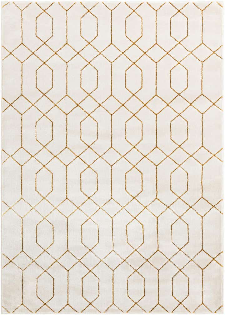 Primary color is White Gold. Colors in this rug include: White Gold, Gold.