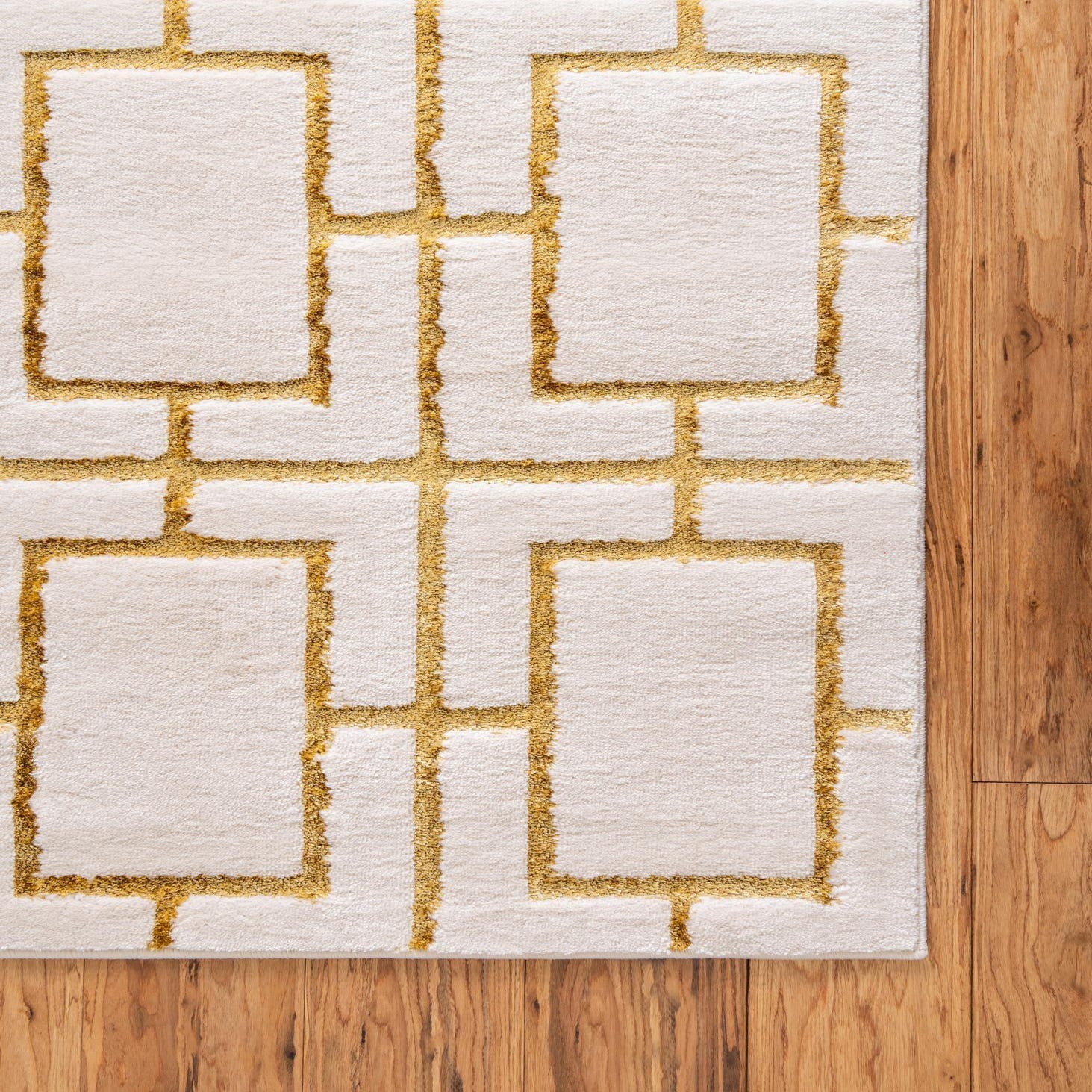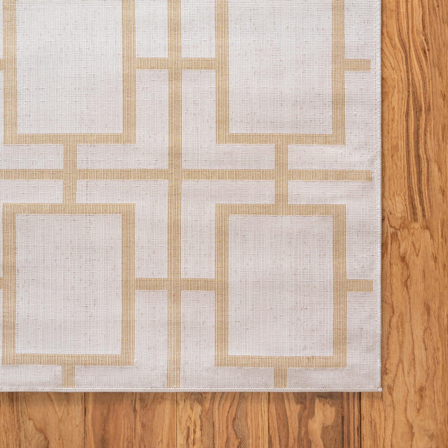 Primary color is White Gold. Colors in this rug include: White Gold, Gold.