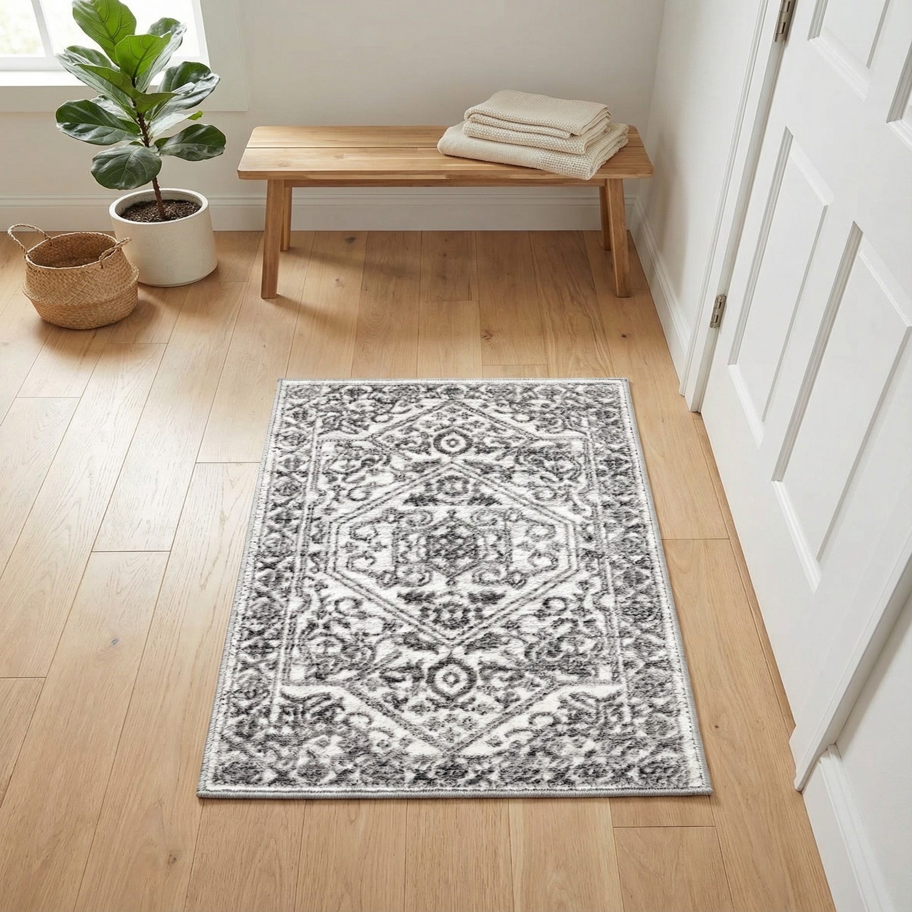 Primary color is white Gray. Colors in this rug include: white Gray, Ivory, Gray.