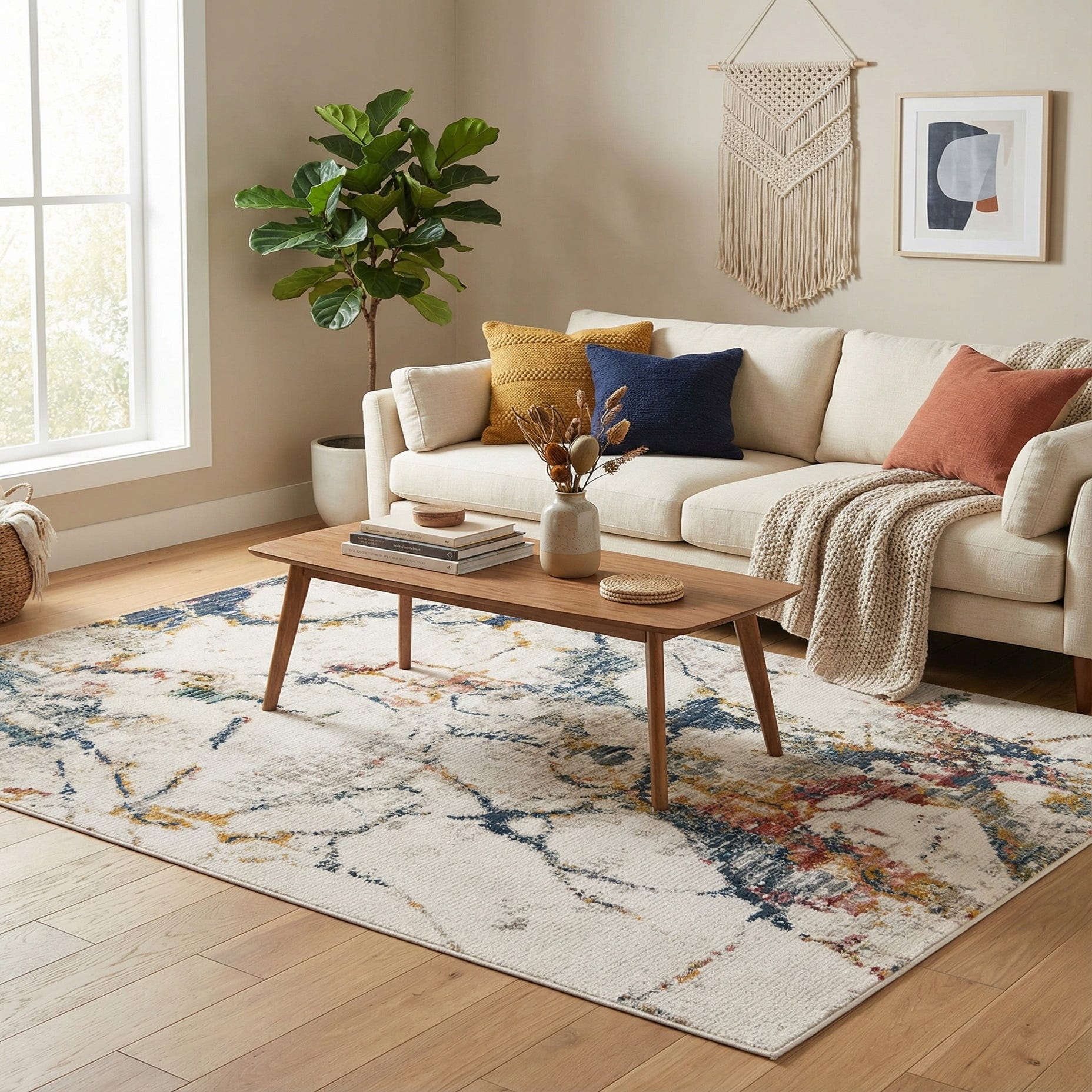 Primary color is White Navy. Colors in this rug include: White Navy, Beige, Gold, Gray, Green, Hunter Green, Light Green, Peach, Orange, Pink.