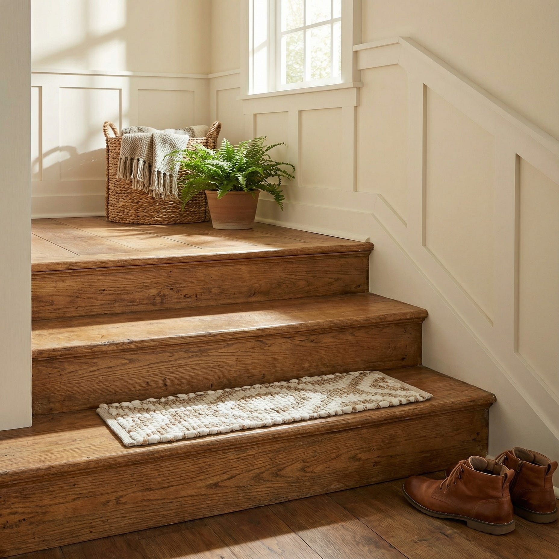0' 9 x 2' 6 Hand Woven Chindi Jute Stair Rug