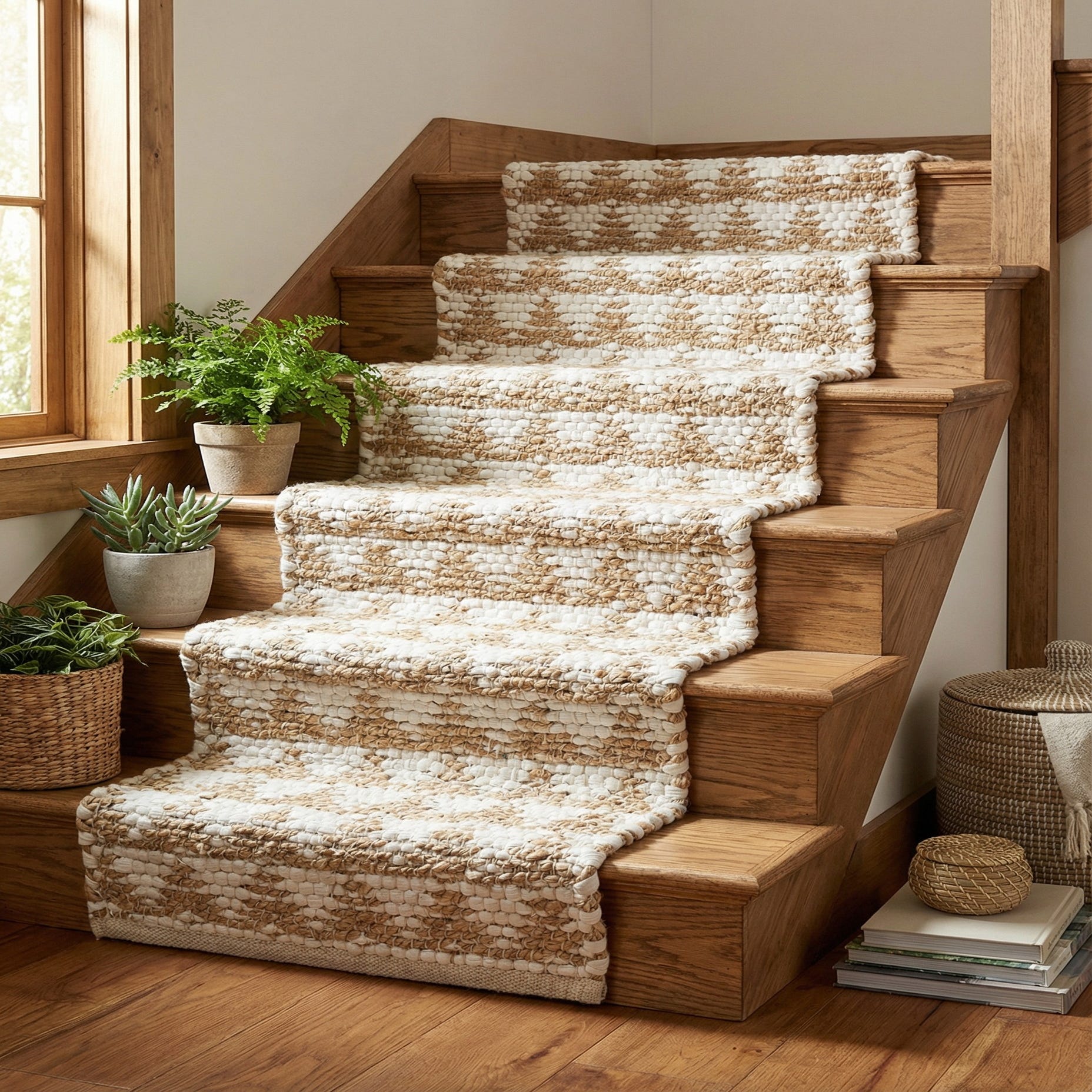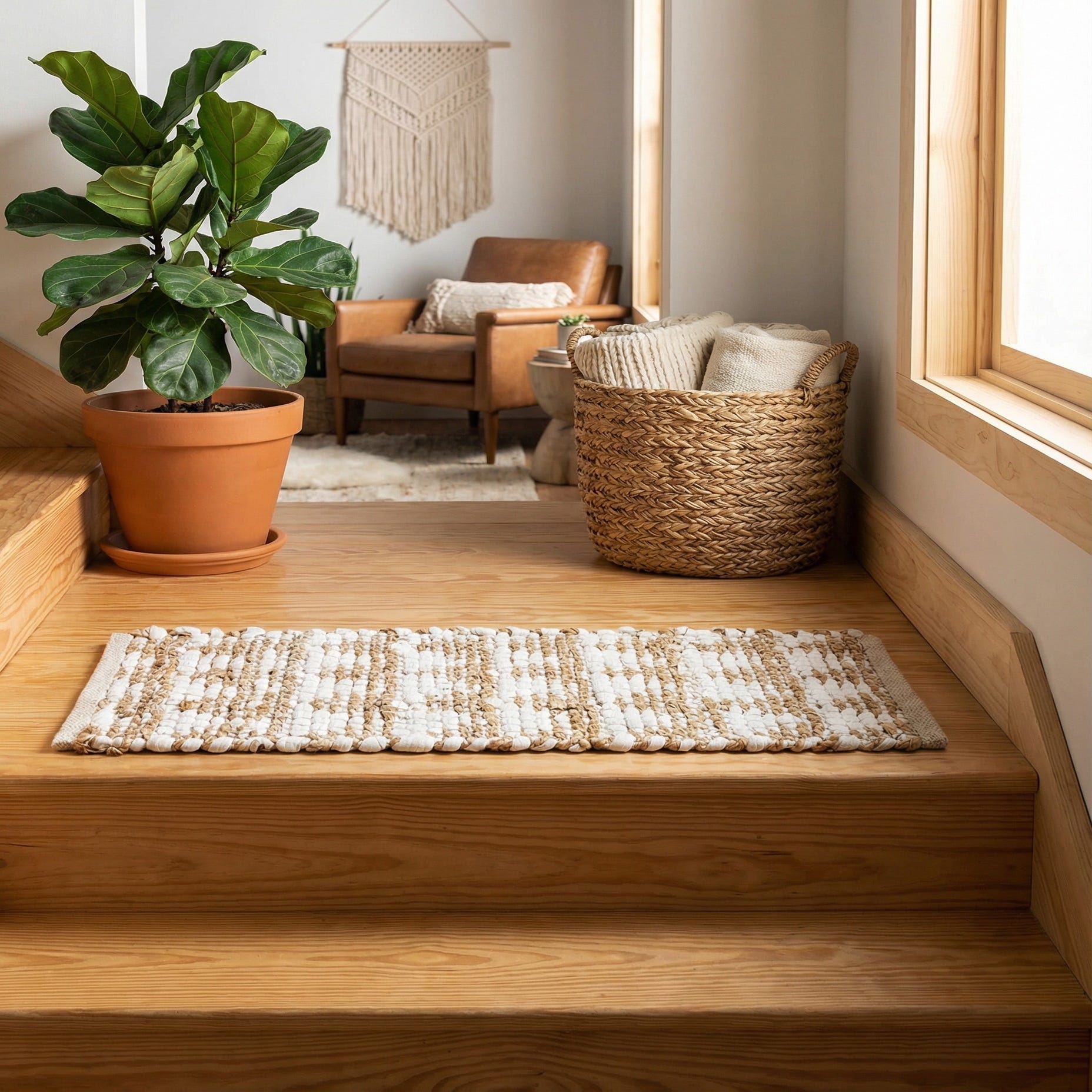 0' 9 x 2' 6 Hand Woven Chindi Jute Stair Rug