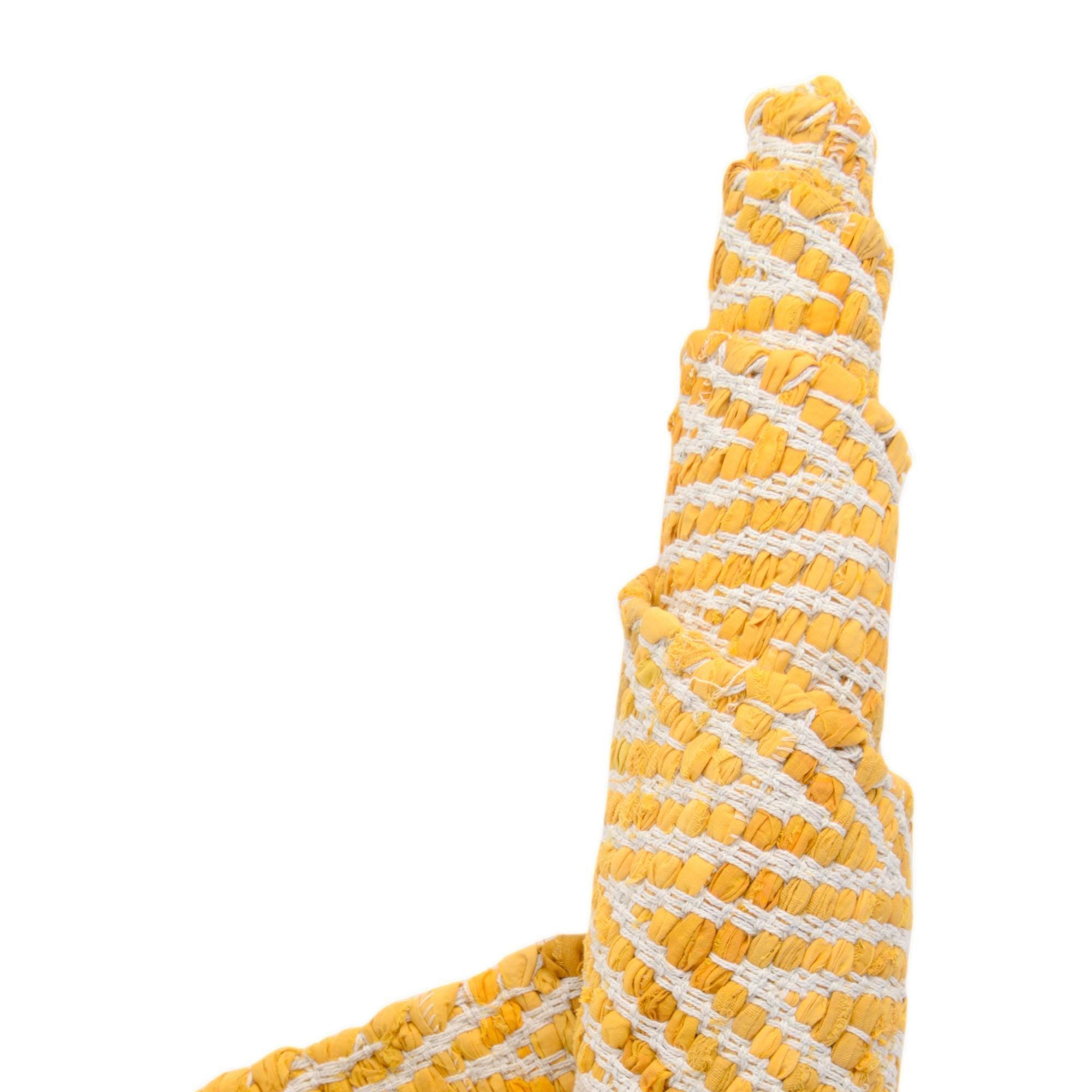 Primary color is Yellow. Colors in this rug include: Yellow, Ivory.