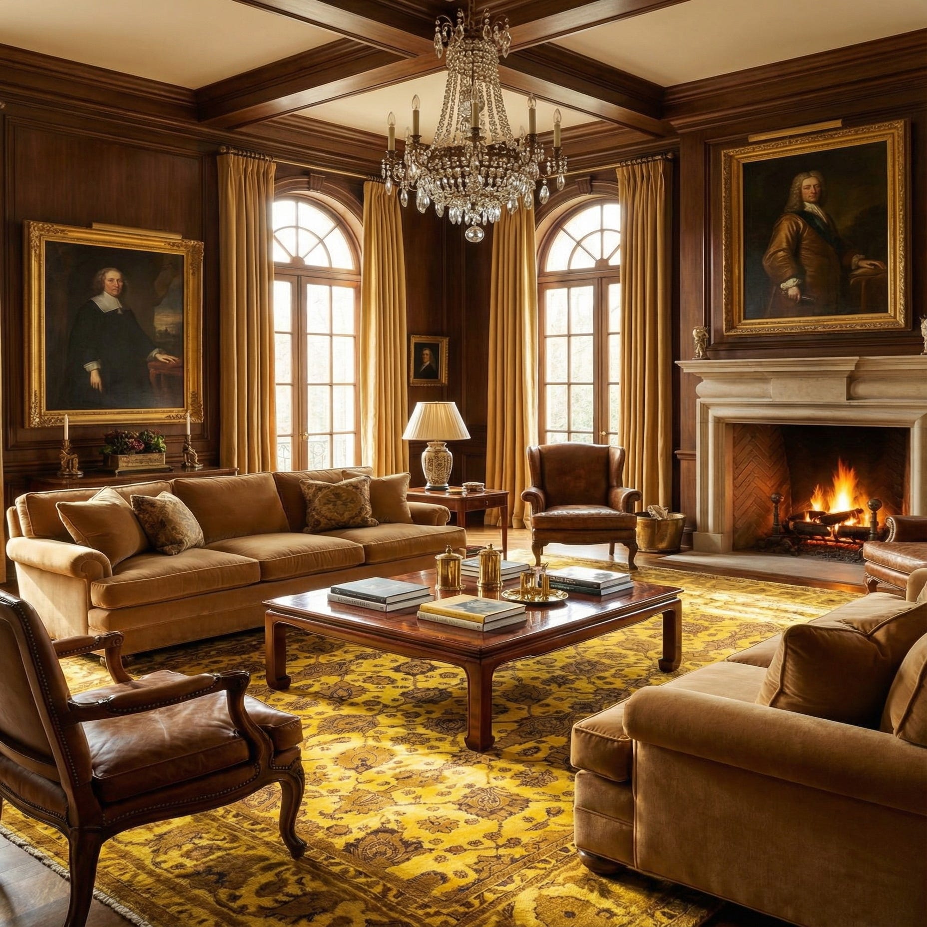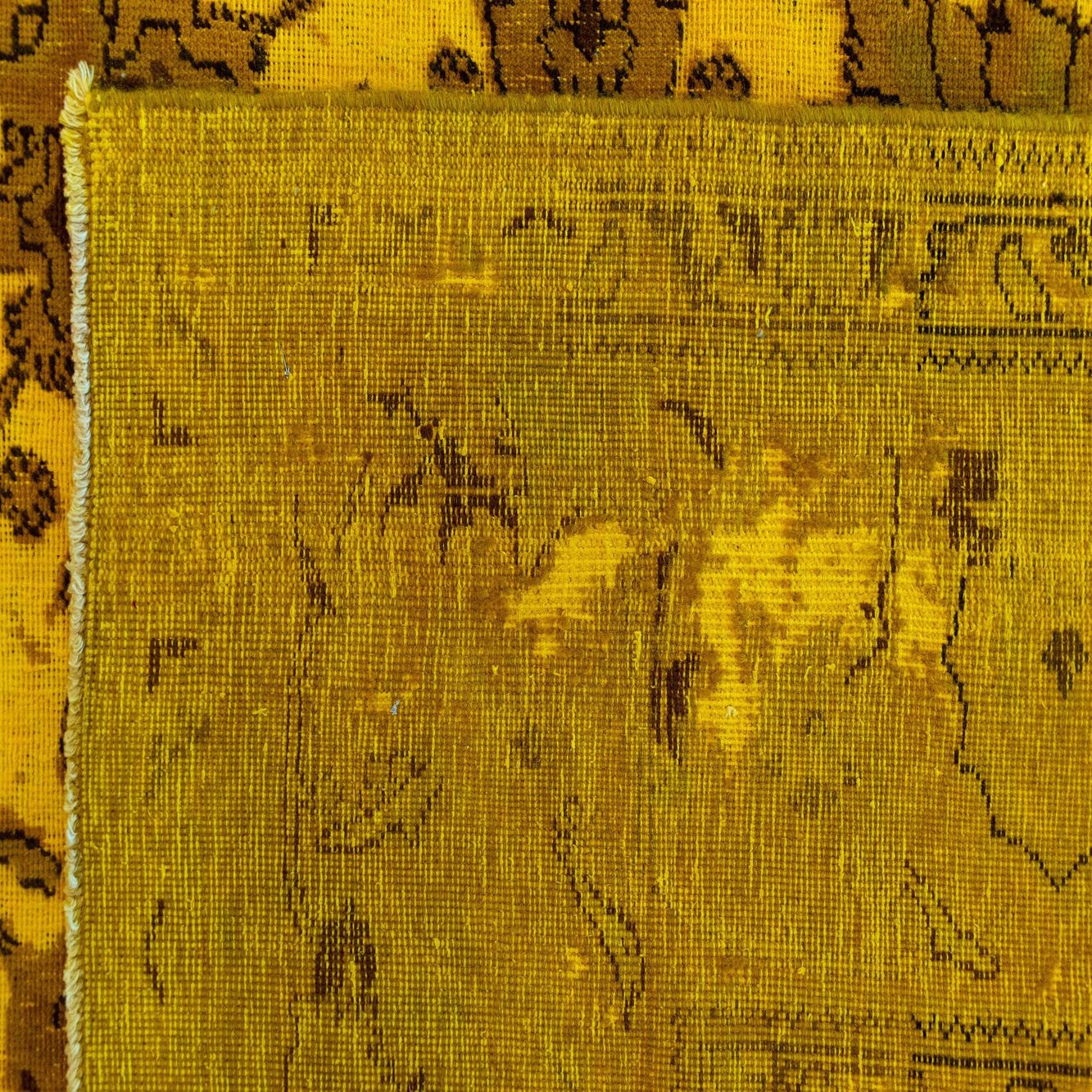 Primary color is yellow. Colors in this rug include: yellow, Brown.