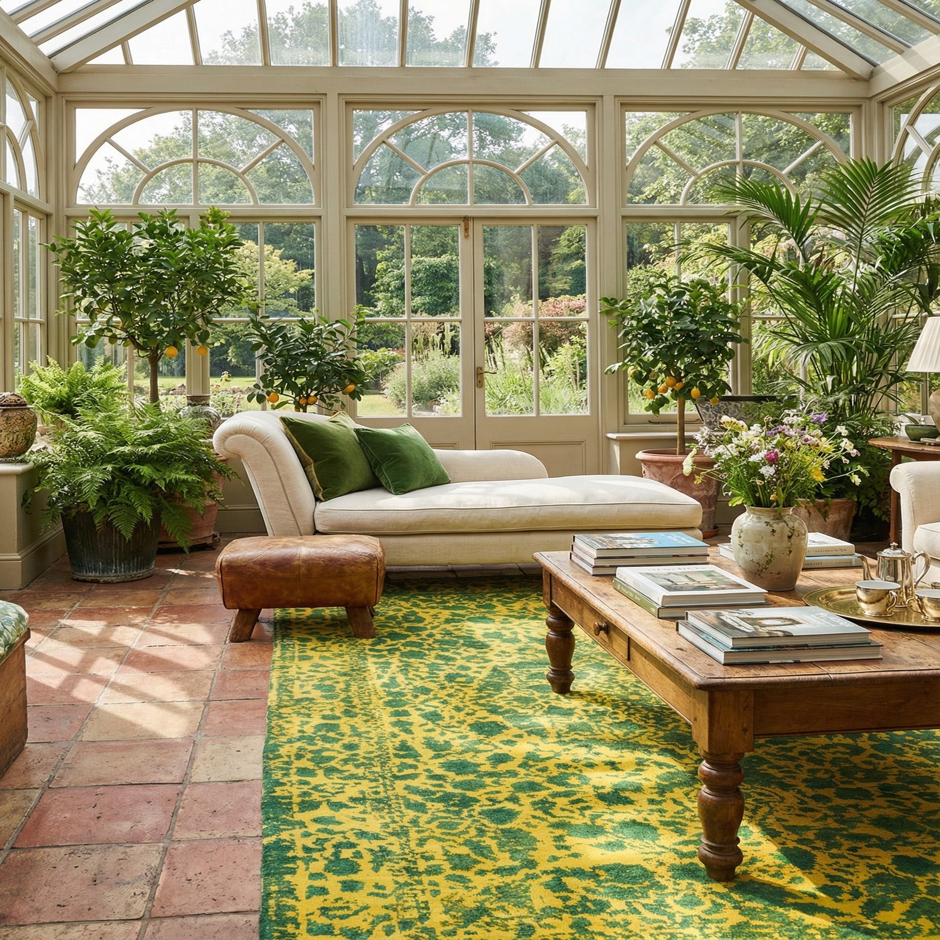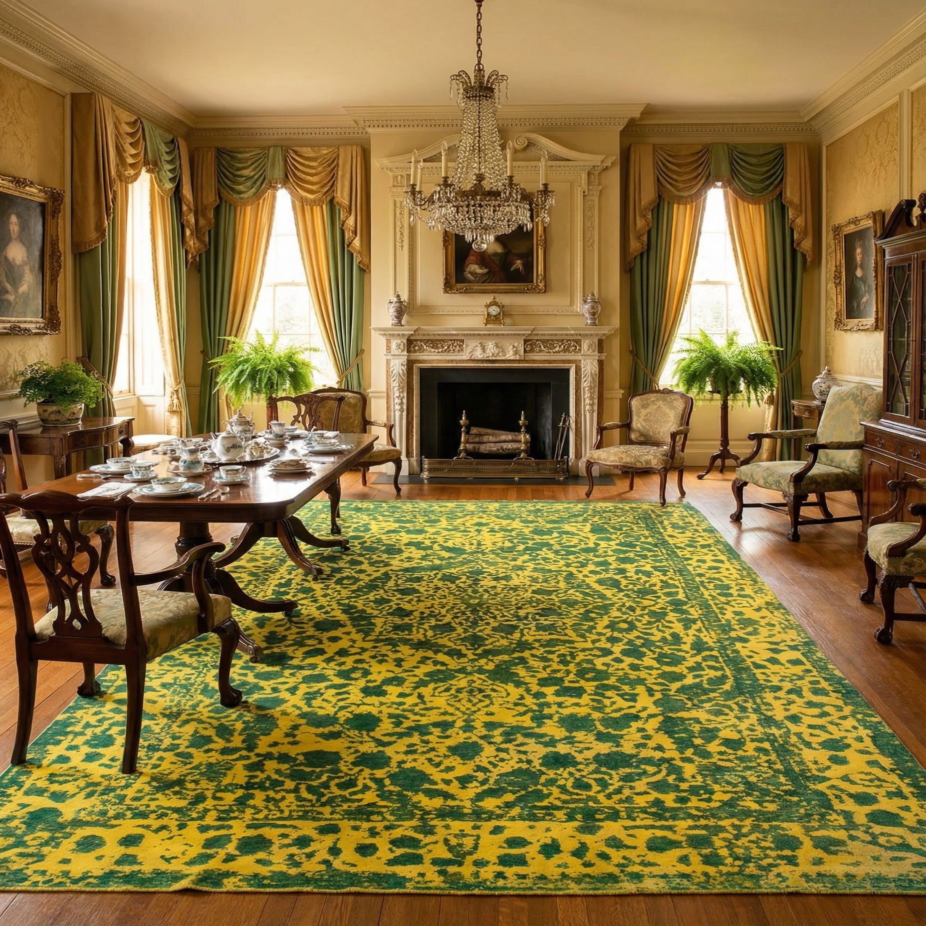 Primary color is Yellow. Colors in this rug include: Yellow, Green.