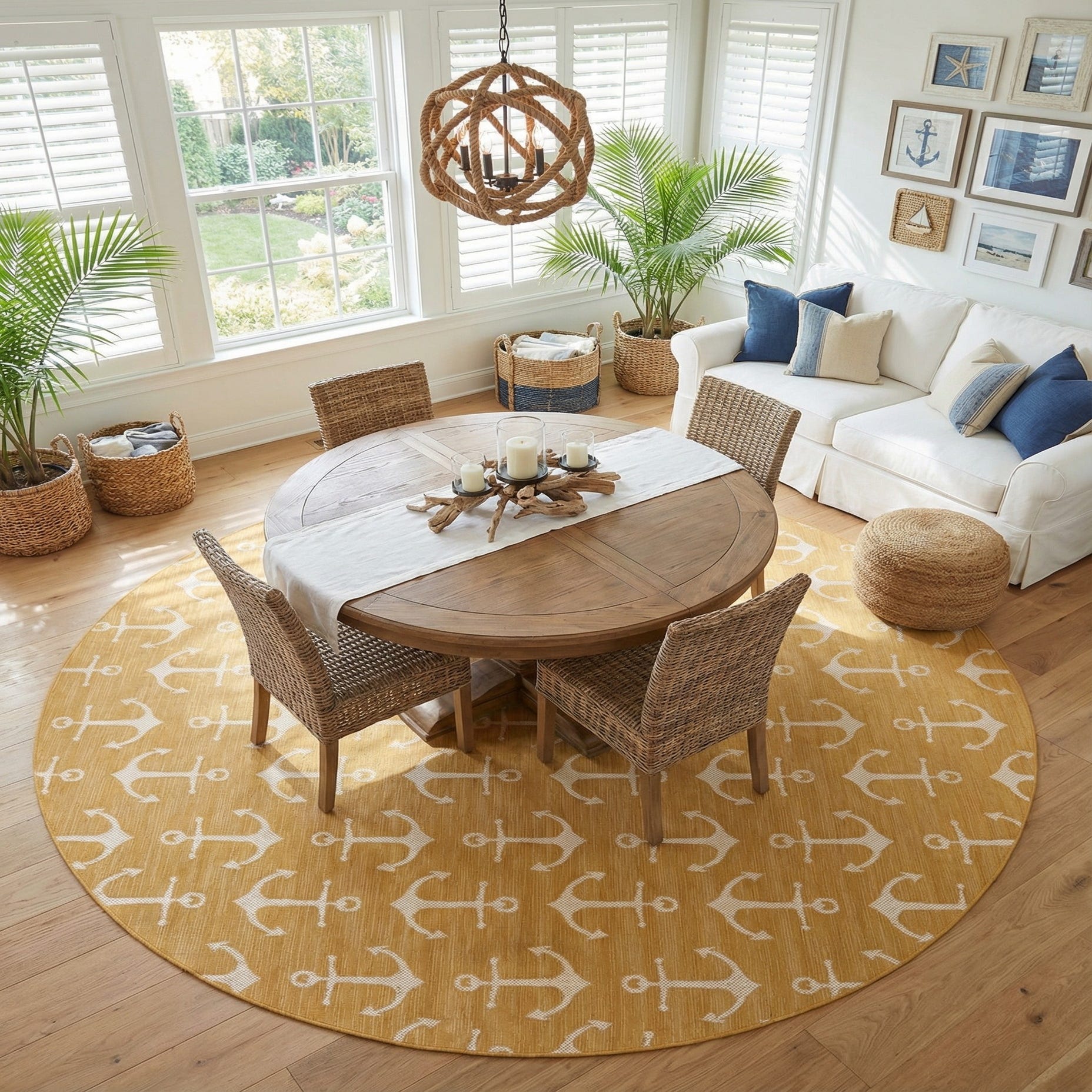 Primary image 13' x 13'  Washable Coastal Indoor / Outdoor Round Rug
